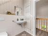 Das Bad im Obergeschoss bietet Dir ein Dachfenster mit Sichtschutz, eine Badewanne, eine Handtuchheizung, einen Föhn und ein weiteres WC.