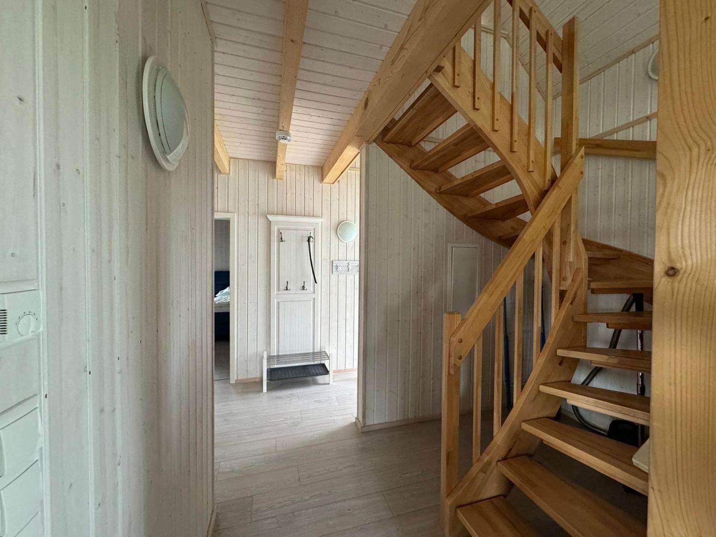Ein Badezimmer befindet sich im Erdgeschoss und ist mit einer Dusche, einem Handtuchheizkörper, einer Waschmaschine, einem Kindertritthocker und dem Highlight, einer Infrarot-Sauna, ausgestattet. Hier kannst Du Dich an kalten Tagen aufwärmen und entspannen.
