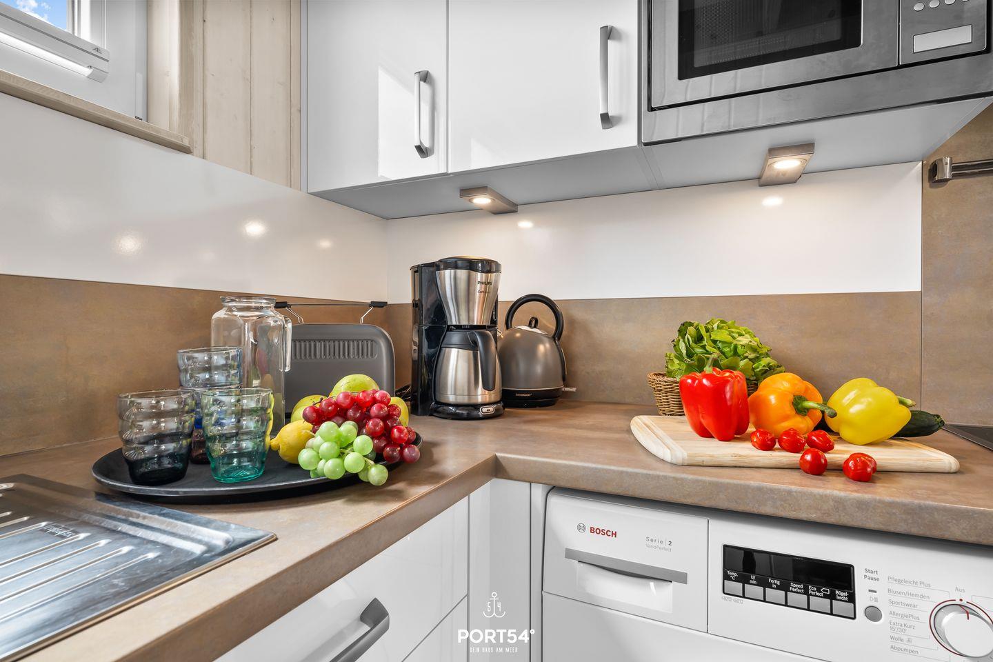 Die modern eingerichtete Küche lässt keine Wünsche offen. Du findest hier alles, um Dich und Deine Mitreisenden kulinarisch verwöhnen zu können.