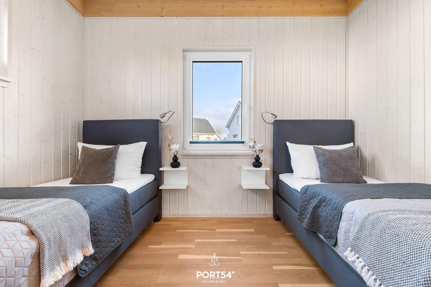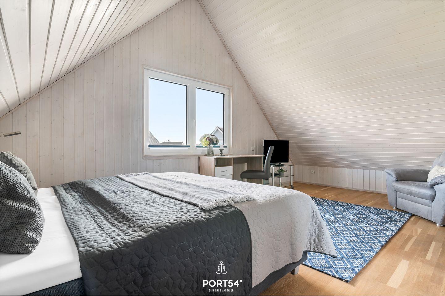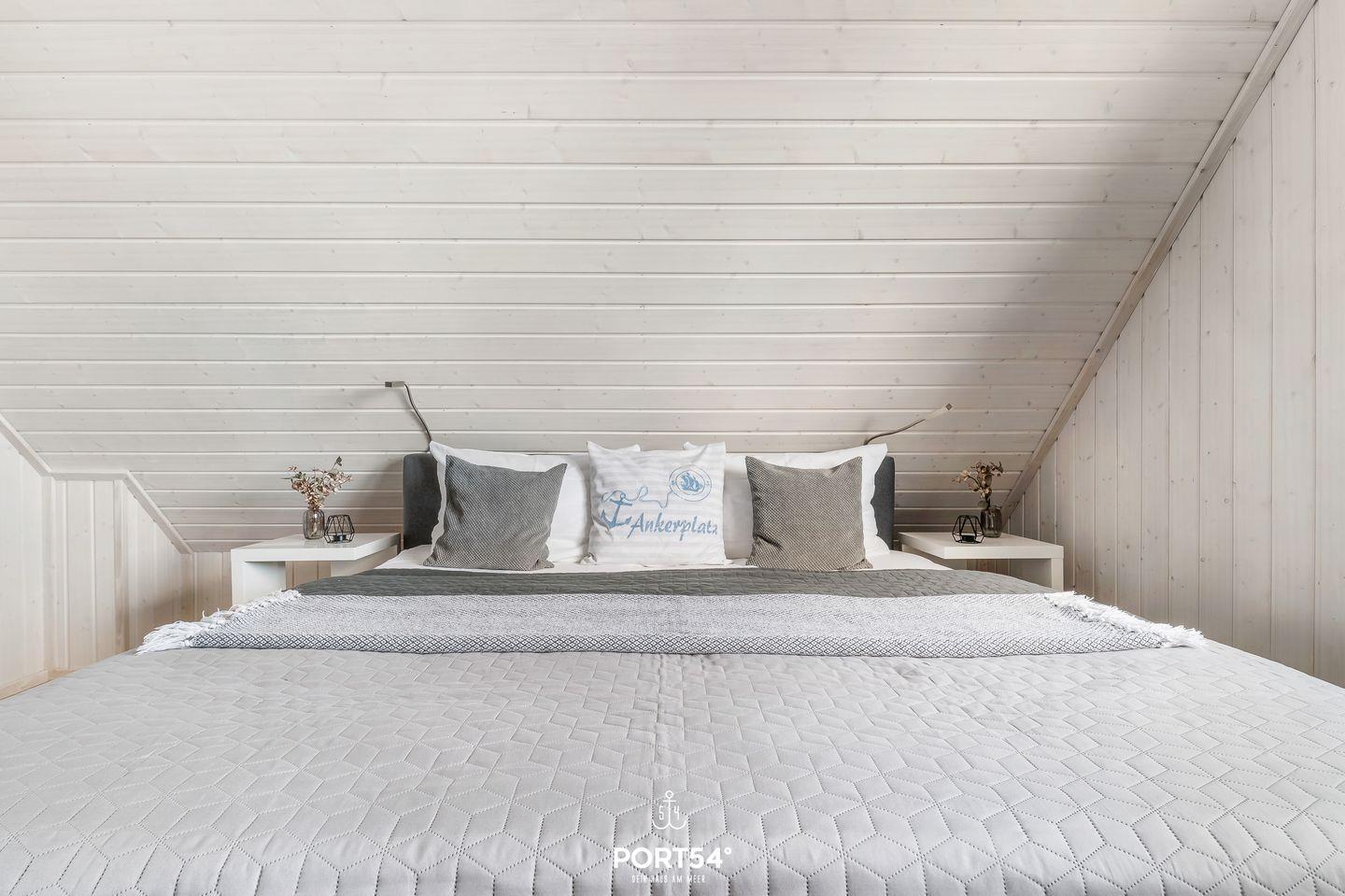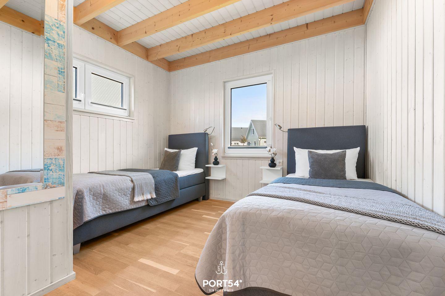 Das Haus verfügt über drei komfortable Schlafzimmer, die Platz für bis zu sechs Personen bieten. Das erste Schlafzimmer im Erdgeschoss ist mit einem gemütlichen Boxspring-Doppelbett (180x200 cm) ausgestattet, während das zweite Schlafzimmer zwei Einzelbetten (je 90x200 cm) bietet.