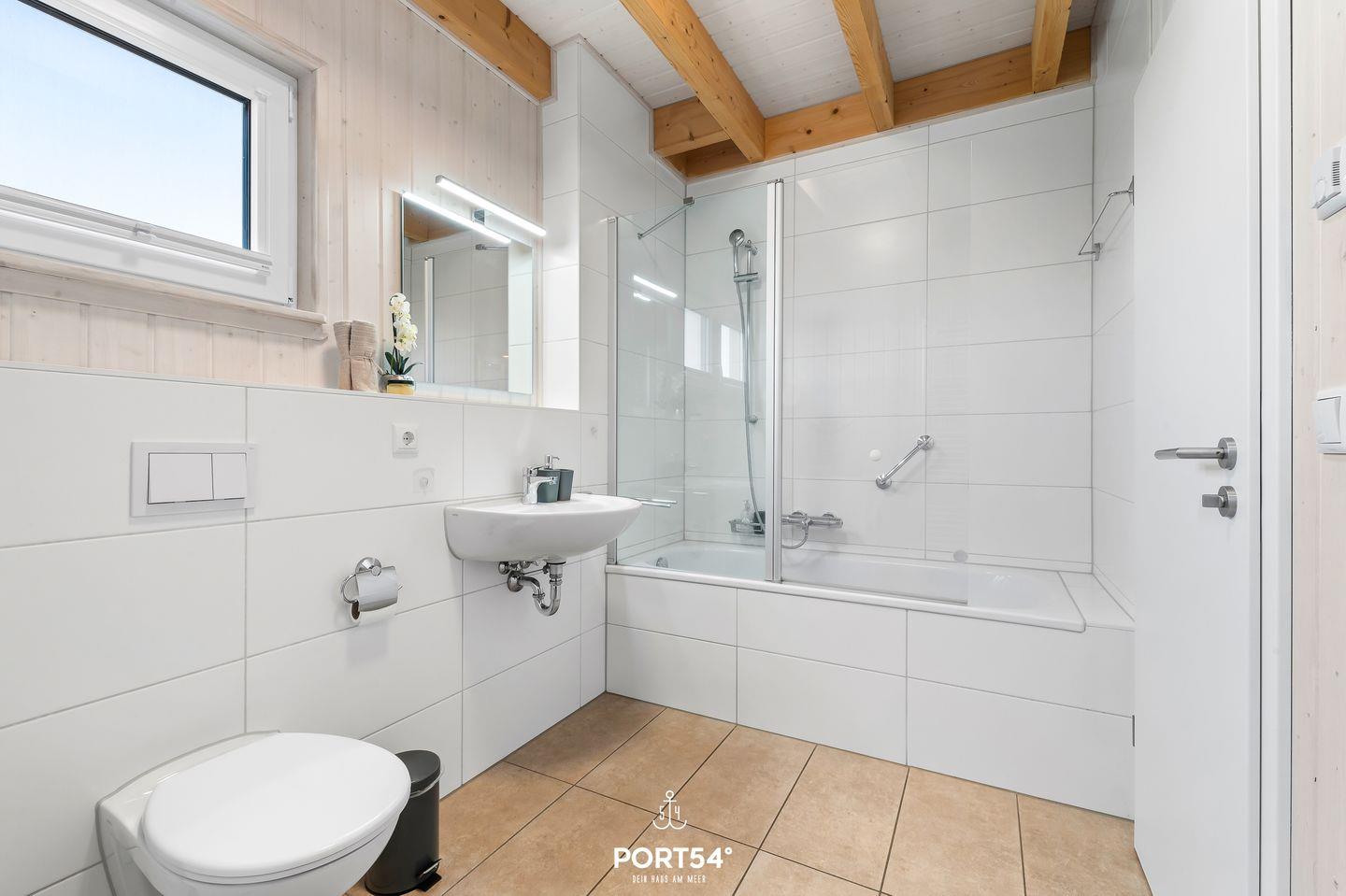 Willkommen in Deinem perfekten Ferienhaus. Drei komfortable Schlafzimmer erwarten Dich: ein Schlafzimmer mit Boxspring-Doppelbett und zwei Schlafzimmer mit jeweils zwei Einzelbetten. Die offene Wohnküche ist voll ausgestattet. Zwei Bäder stehen zur Verfügung, eines mit Badewanne, Infrarotsauna sowie eins mit Dusche. Genieße die Terrasse mit gemütlichen Outdoormöbeln, einem Holzkohlegrill und einem Sonnenschirm. Ein abschließbarer Fahrradschuppen sowie zwei Parkplätze runden das Angebot ab.
