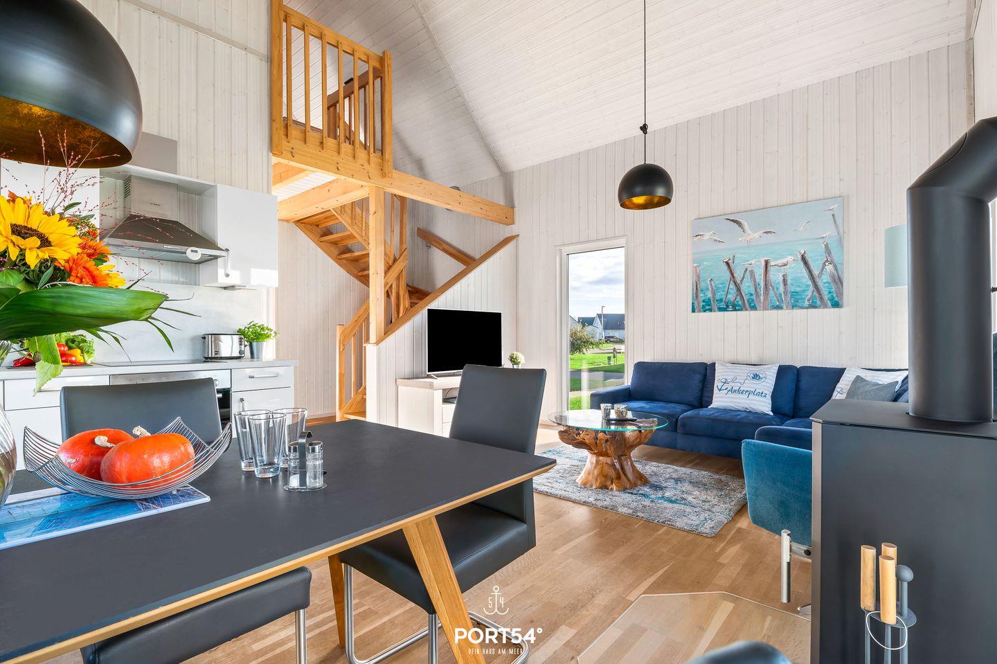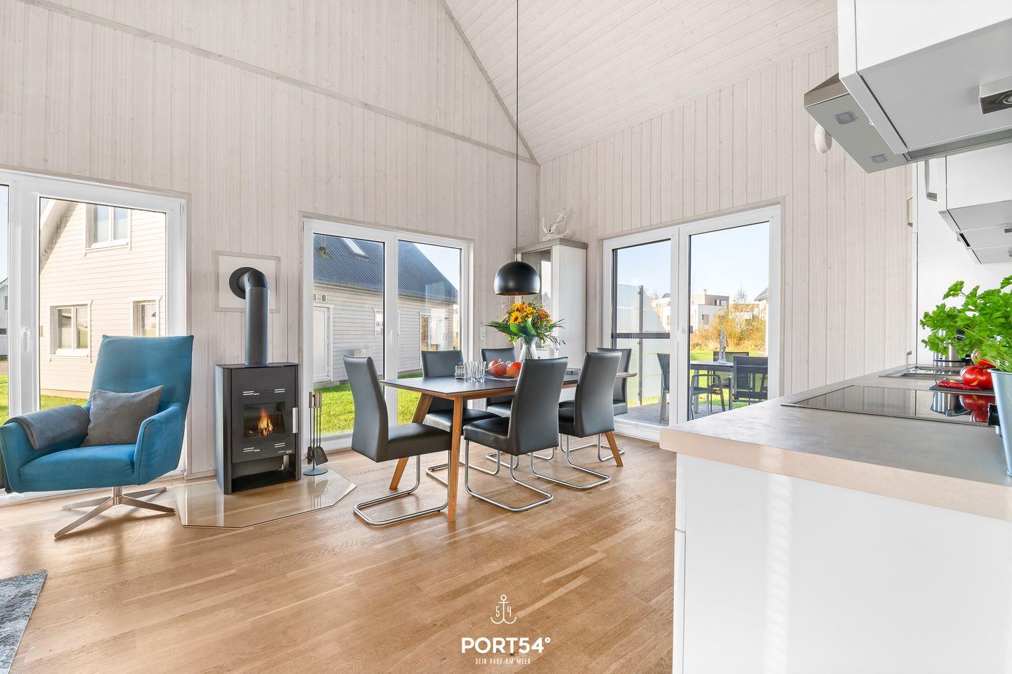 Die offene, loftartige Bauweise schafft eine einladende Atmosphäre, in der sich Wohn- und Küchenbereich harmonisch verbinden. Große Fenster bis zum Boden lassen viel Tageslicht herein und bieten Dir einen herrlichen Blick auf die Umgebung.