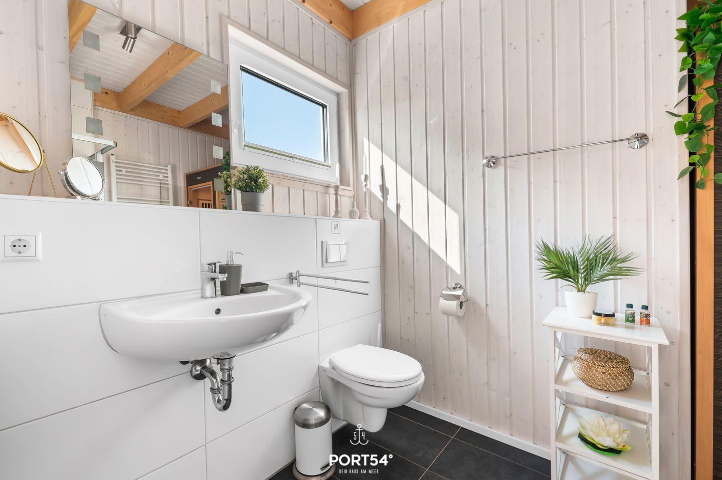 Das großzügige Badezimmer im Untergeschoss überzeugt mit einem Fenster, einer Dusche und dem Highlight – einer Infrarot-Sauna, die für pure Entspannung sorgt.