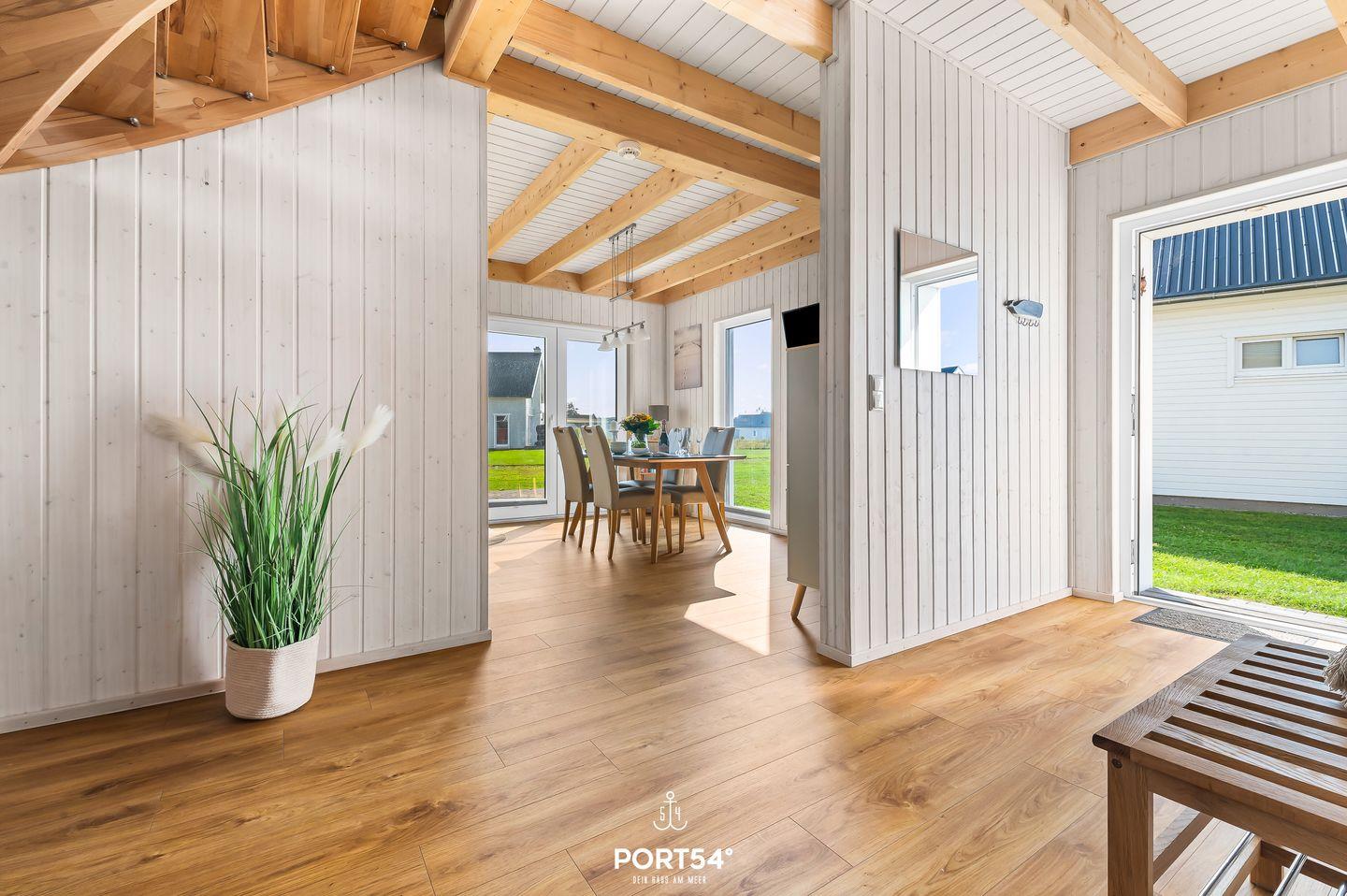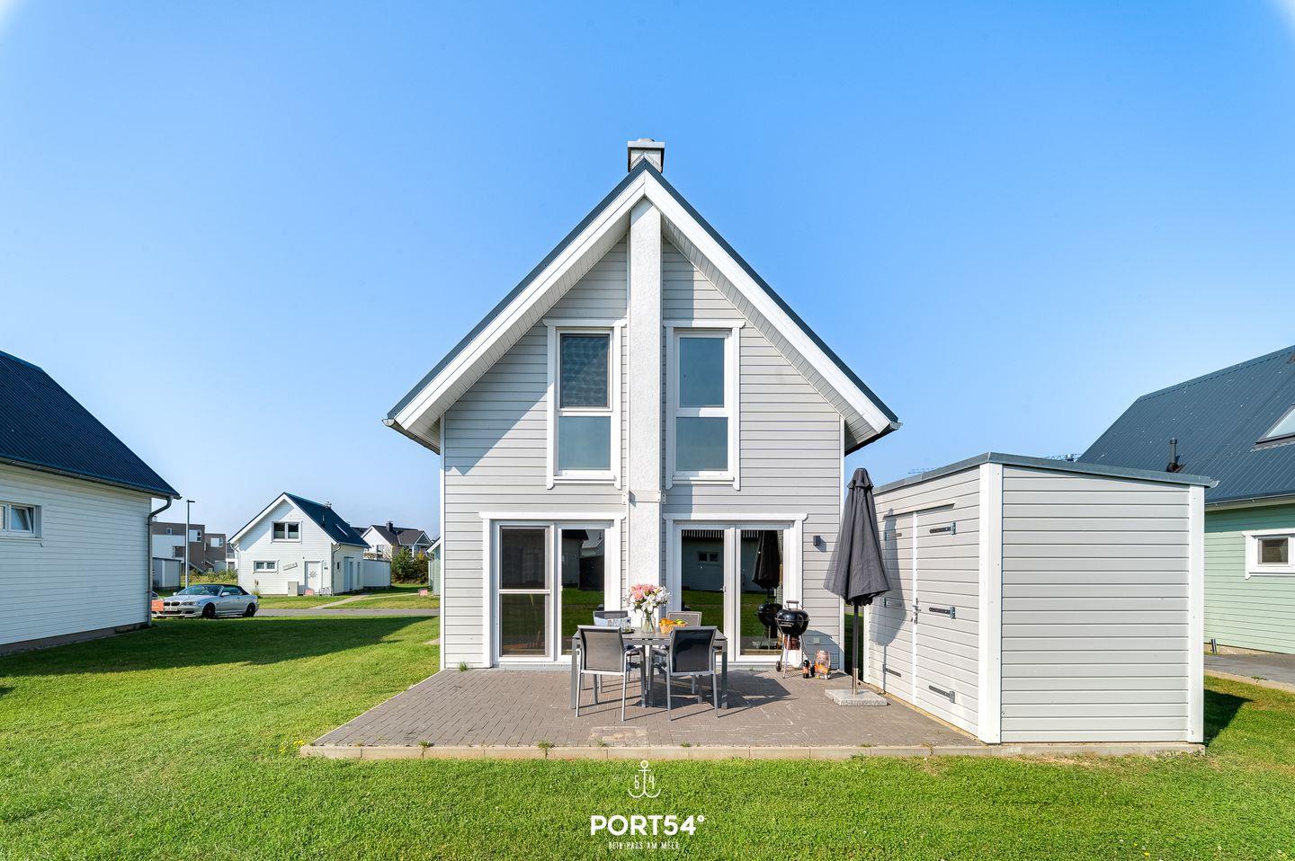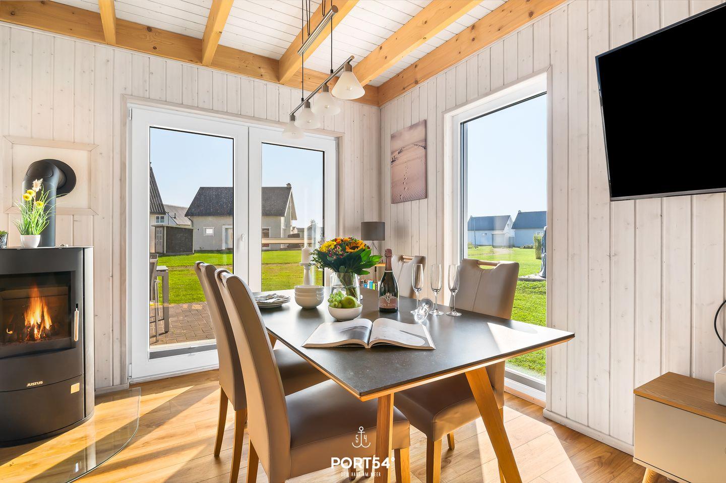 Auf 82 m² erwartet Dich ein freistehendes Haus mit lichtdurchflutetem Wohn- und Essbereich, gemütlicher Couch und Kamin. Die Küche ist voll ausgestattet. Das großzügige Badezimmer hat eine Dusche und eine Infrarot-Sauna. Im Obergeschoss findest Du zwei Schlafzimmer: eines mit Doppelbett (180x200 cm) und Smart-TV, das andere mit zwei Einzelbetten (90x200 cm). Genieße die ca. 25 m² große Terrasse mit Outdoormöbeln und Grill. Ein Fahrradschuppen und ein Parkplatz runden das Angebot ab.