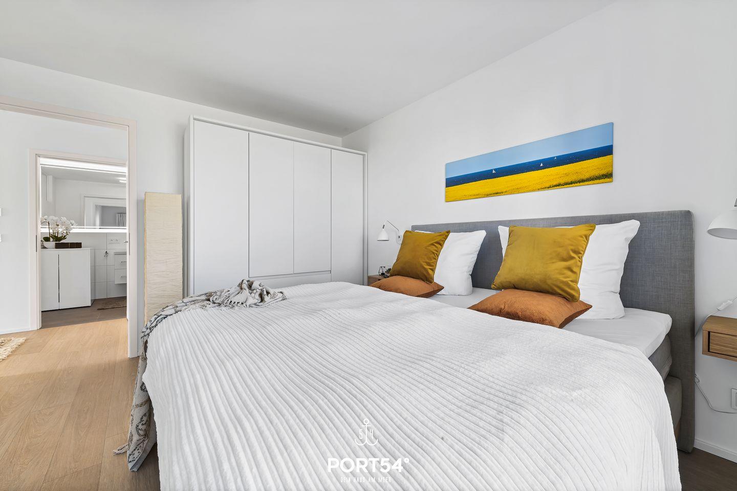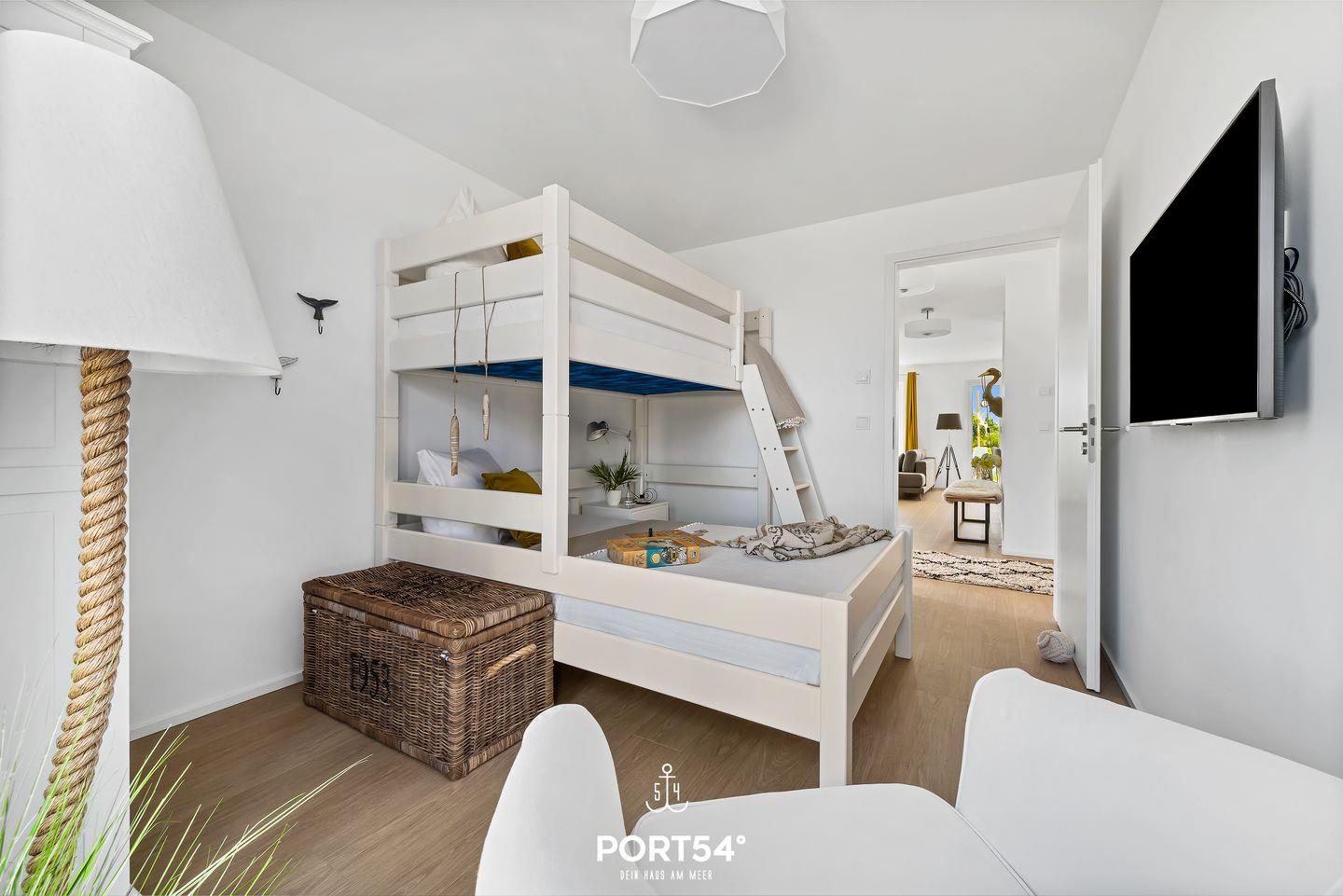Für die Nachtruhe stehen Dir zwei Schlafzimmer zur Verfügung. Ein Schlafzimmer ist mit einem Schweizer Premium-Boxspring-Doppelbett ausgestattet, das zweite Schlafzimmer verfügt über ein Etagenbett. Beide Schlafzimmer bieten Dir einen Flatscreen-Fernseher, einen Kleiderschrank sowie Verdunkelungsmöglichkeiten.