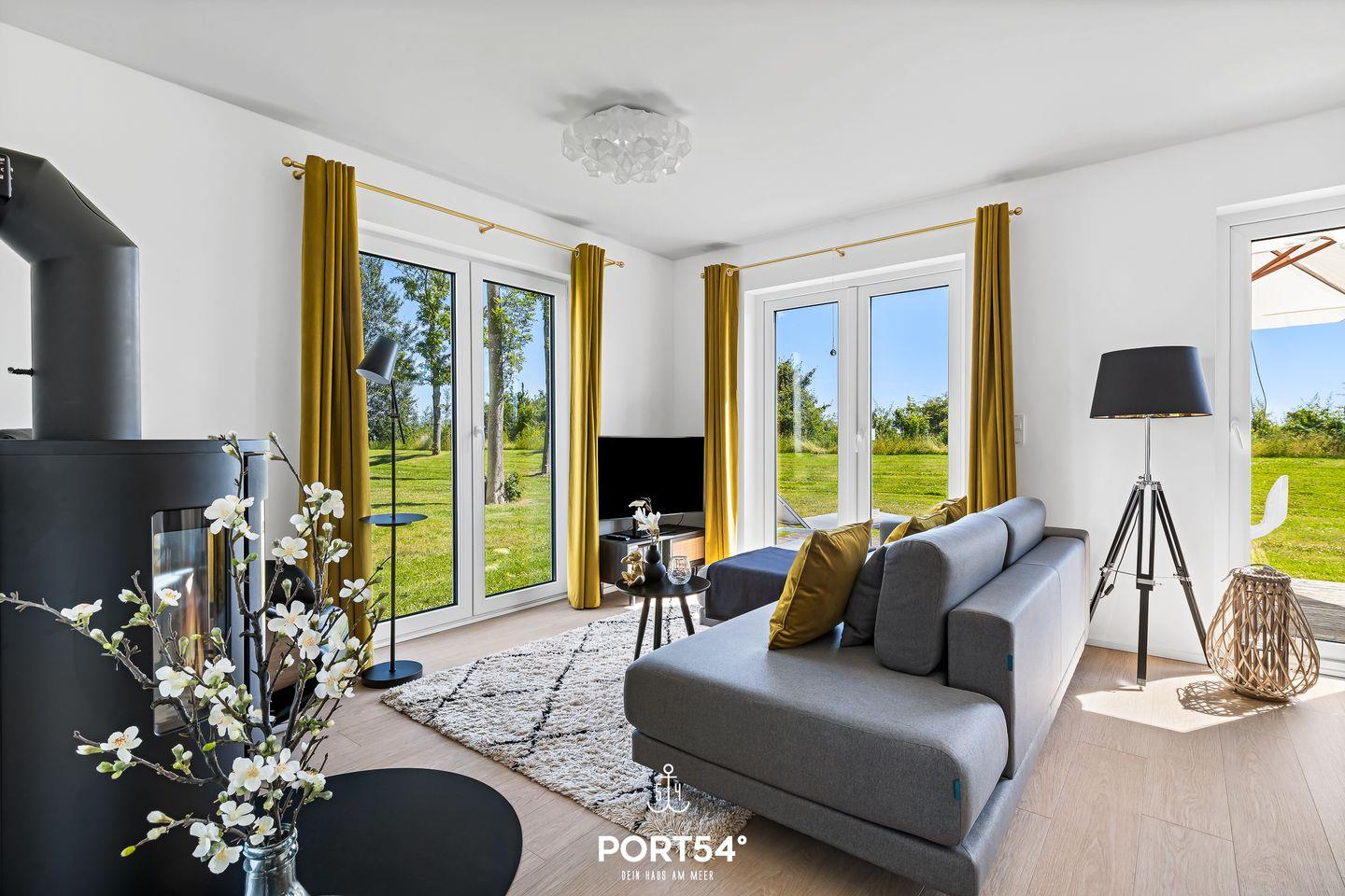 Sollte sich das Wetter einmal von seiner norddeutschen Seite zeigen, kannst Du Dich auf gemütliche Kuschelstunden am Kamin oder einen entspannten Fernsehabend über Magenta-TV auf der Wohnlandschaft freuen. Auch Vinyl-Fans kommen auf ihre Kosten, denn ein Plattenspieler steht für Dich bereit.