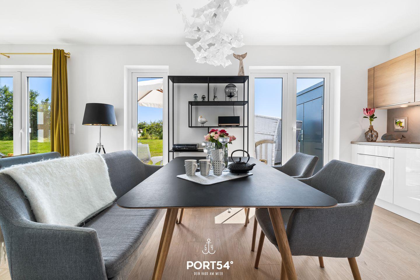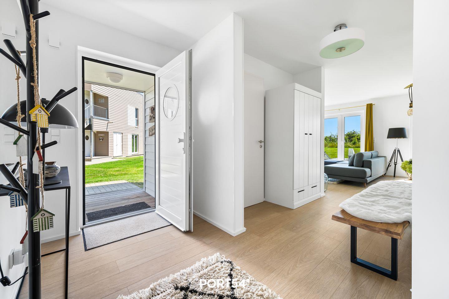 Freue Dich auf wunderschöne Augenblicke – morgens beim Frühstück auf der Terrasse auf den Gartenmöbeln, geschützt unter dem Sonnenschirm, oder abends auf den Sonnenliegen, wenn Du den Tag mit einem Sundowner ausklingen lässt. Erlebe den Charme und die Atmosphäre der konsequent im Scandi-Style gehaltenen Wohnung. Liebevolle Details und eine hochwertige Ausstattung versprechen Dir pures Wohlbefinden.