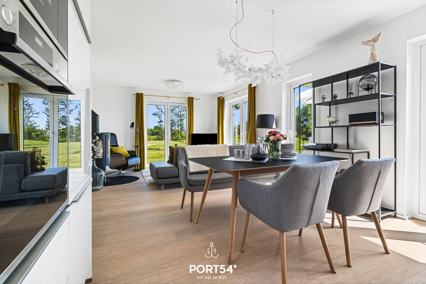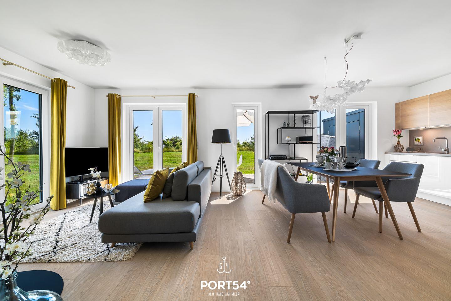 Captain Barbossas Sehnsuchtsort. Freue Dich auf eine großzügige, lichtdurchflutete Erdgeschoss-Ferienwohnung am südlichen Rand des OstseeResorts Olpenitz in fußläufiger Nähe zum Weidefelder Strand. Bodentiefe Fenster und eine große Terrasse in Süd-West-Ausrichtung schaffen eine besondere Verbundenheit mit dem unmittelbar angrenzenden Landschaftsschutzgebiet und eröffnen Dir einen Weitblick über die ausgedehnte Wiesenlandschaft.