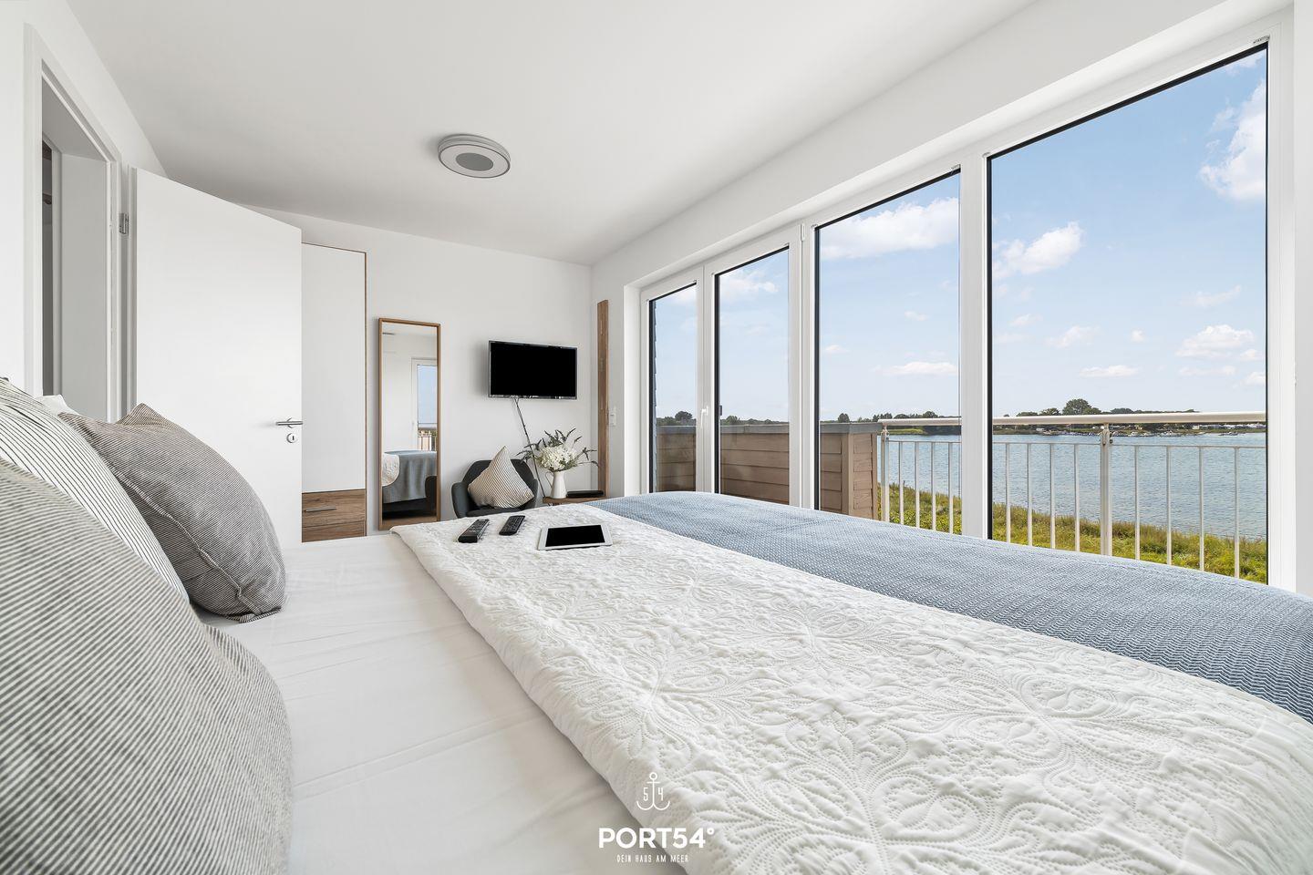 Jedes der drei Schlafzimmer ist mit modernen Smart-TVs und praktischen Fliegengittern ausgestattet. Aus den Schlafzimmern mit den Doppelbetten hast Du jeweils aus einer großen Fensterfront einen traumhaften Blick auf das Wasser.