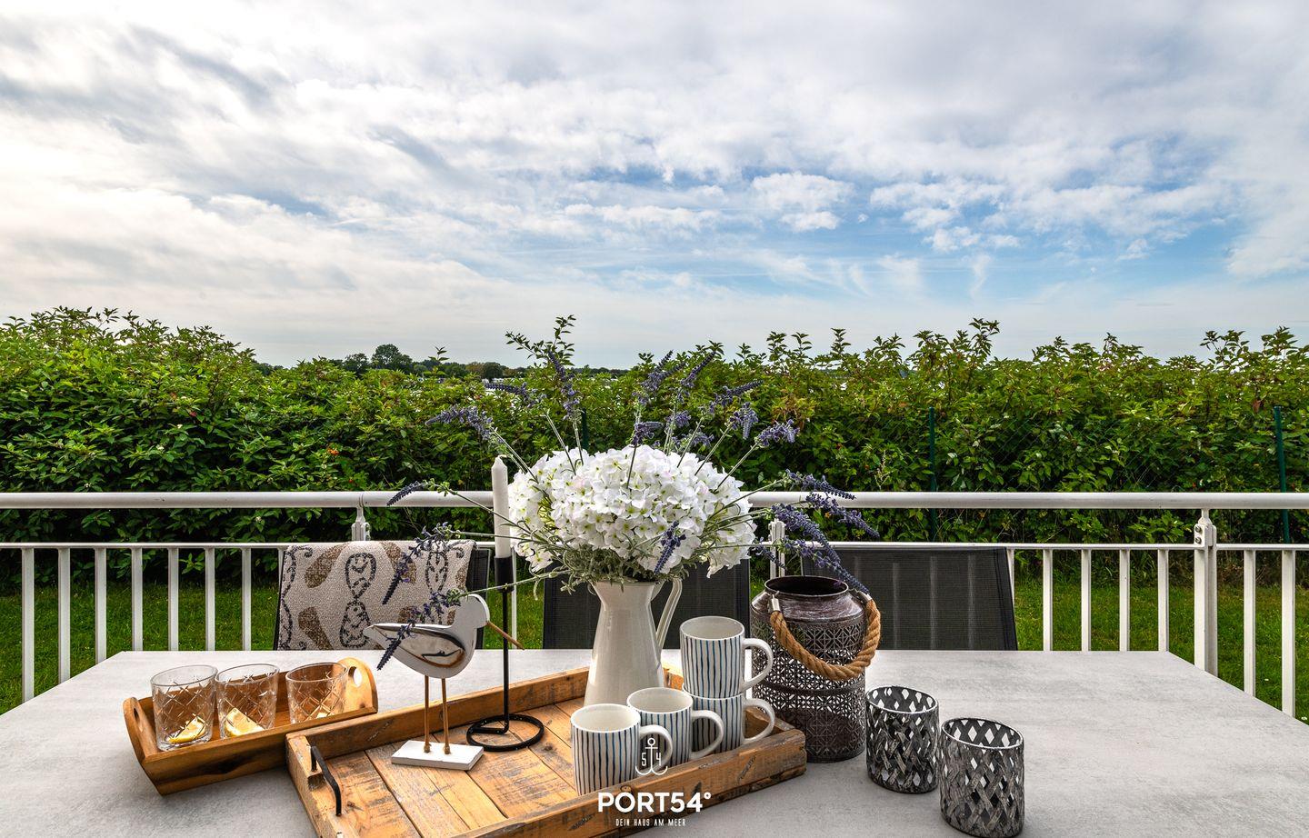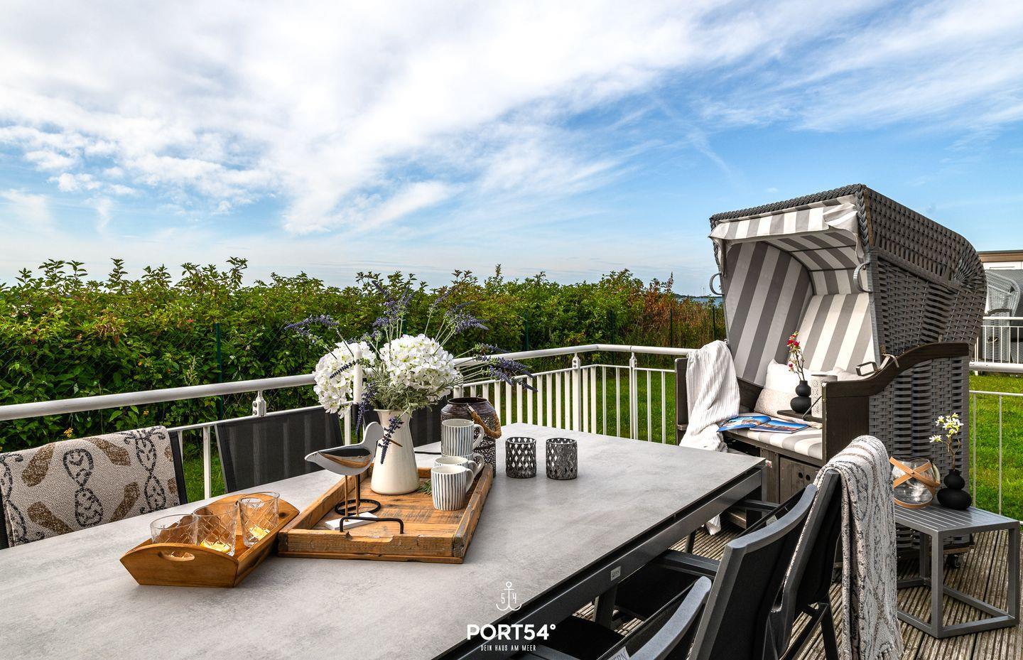 Die voll ausgestattete Küche mit Essbereich lädt zu gemeinsamen Mahlzeiten und geselligen Abenden ein. Vom stilvoll eingerichteten Wohnzimmer aus gelangst Du auf die Terrasse, auf der sich der Strandkorb befindet. Verbringe unvergessliche Grillabende oder genieße hier Dein Frühstück an der frischen Ostseeluft.