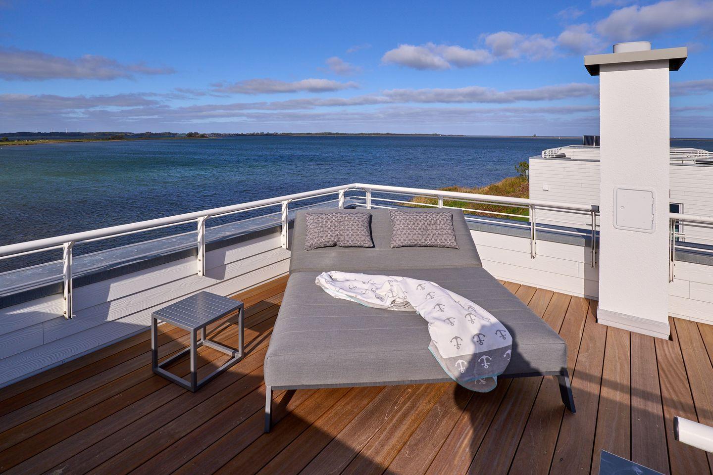 Der absolute Höhepunkt ist die Dachterrasse mit Lounge-Bereich, die Dir einen atemberaubenden 360-Grad-Panoramablick auf das glitzernde Wasser bietet – ein wahrhaft himmlischer Ort, um die Seele baumeln zu lassen.