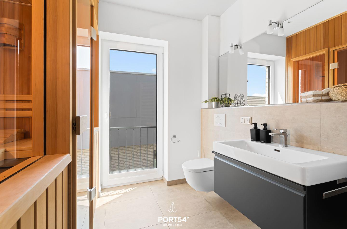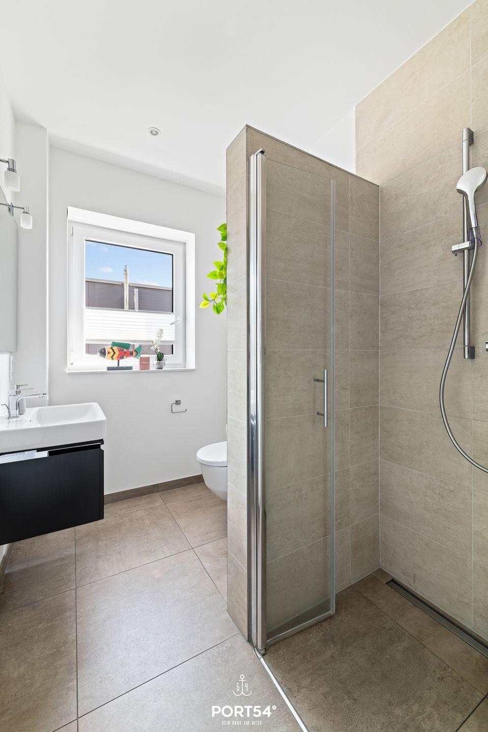 Ein besonderes Highlight der Wohnung sind die beiden modernen Badezimmer, die jeweils mit einer bodengleichen Dusche ausgestattet sind. Ein Badezimmer bietet zudem eine Finnische Sauna, in der Du nach einem langen Tag am Strand oder einer Wanderung entlang der Küste entspannen kannst. Selbstverständlich darf auch eine Waschmaschine nicht fehlen und ist gerade bei längeren Aufenthalten ein praktischer Helfer.