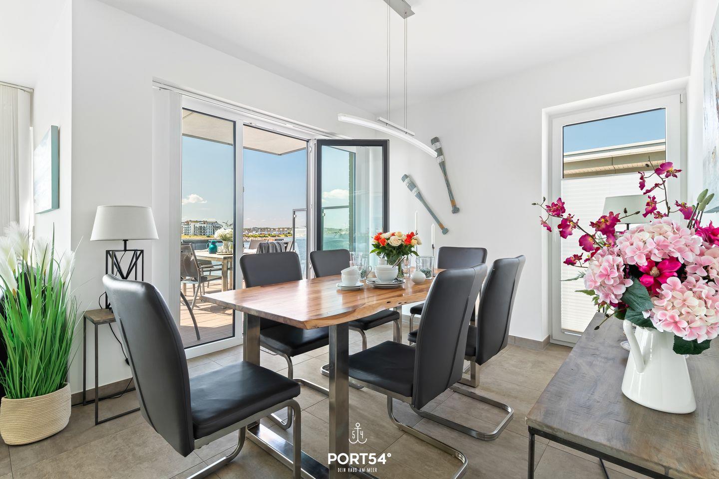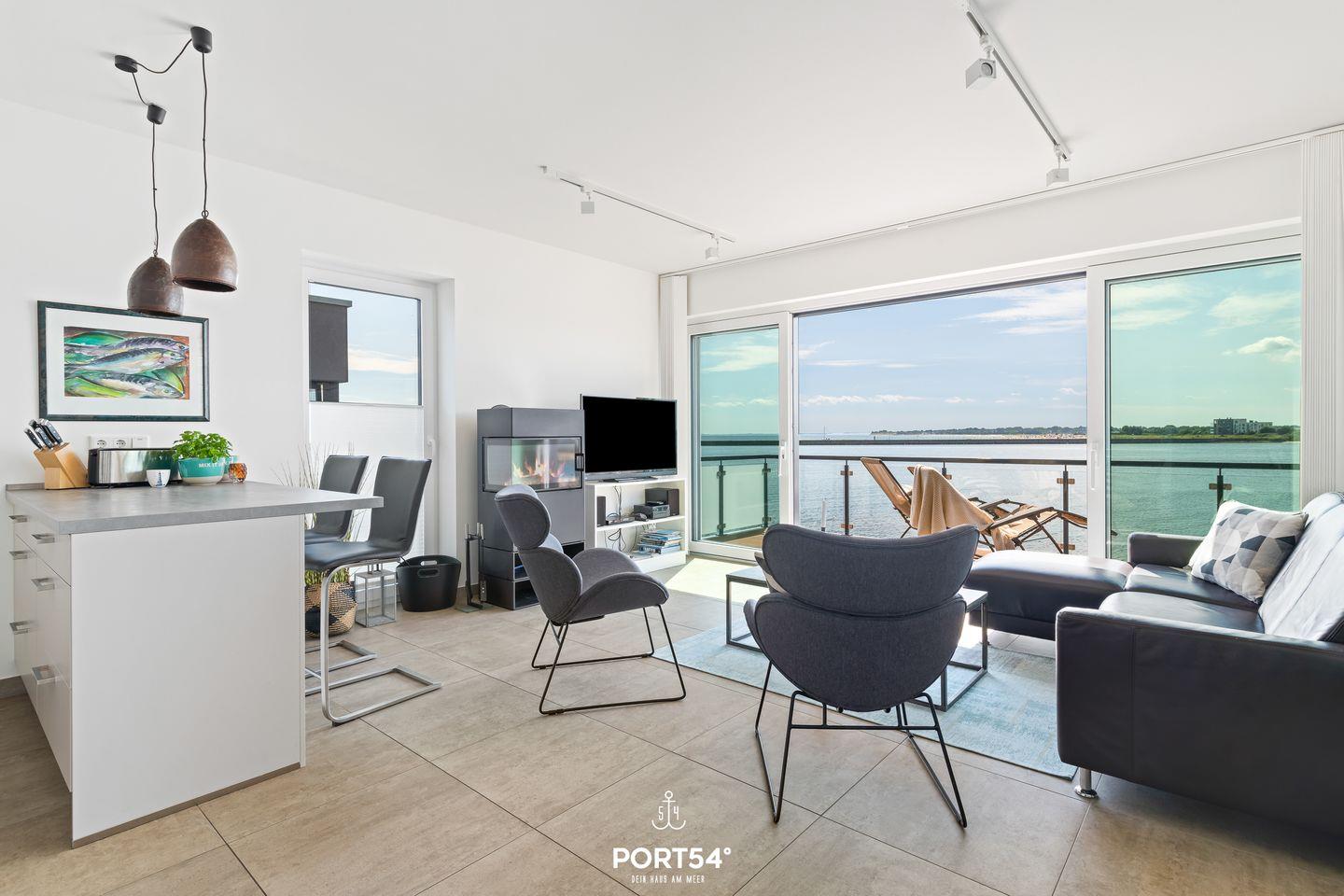 Die Wohnung verfügt über einen offenen Wohn- und Essbereich, der durch seine geschmackvolle Einrichtung und die gemütliche Atmosphäre besticht. Der lichtdurchflutete Raum bietet Dir direkten Zugang zu einem großzügigen Balkon, von dem Du einen herrlichen Blick auf die Schlei und die Ostsee genießen kannst. Ob beim Frühstück oder beim abendlichen Glas Wein – der Balkon lädt zu entspannten Stunden mit atemberaubendem Panorama ein.