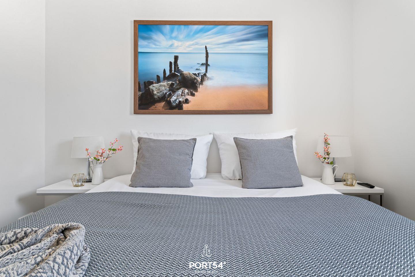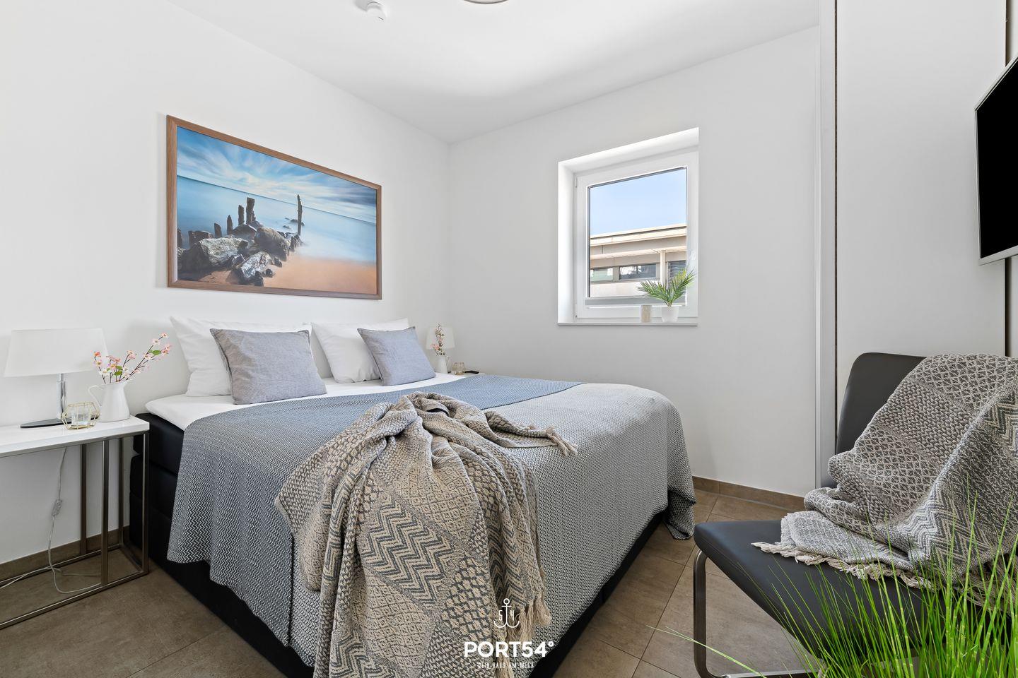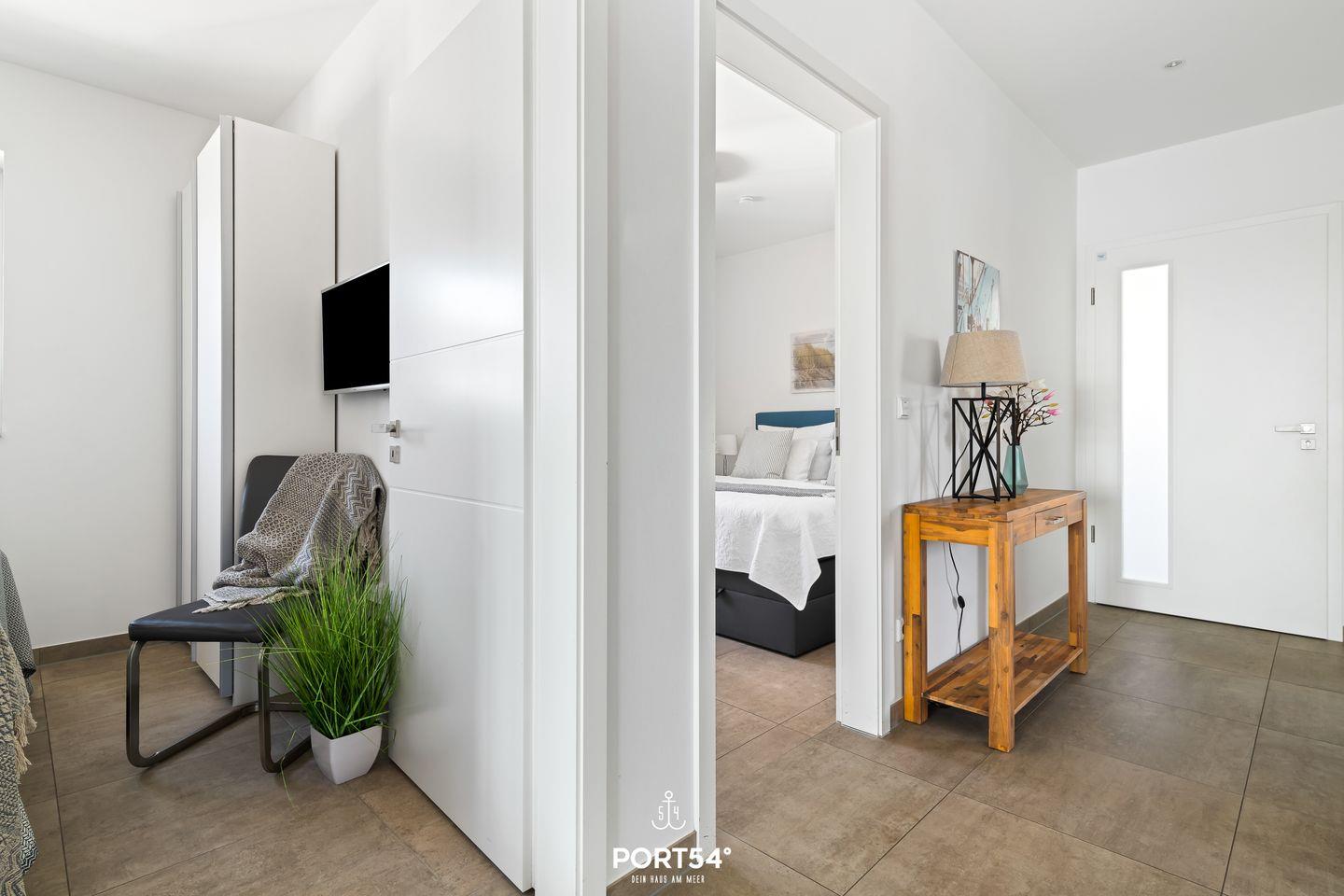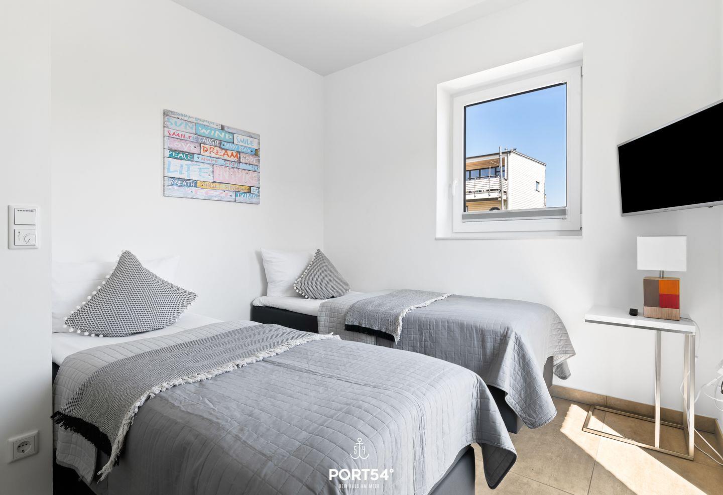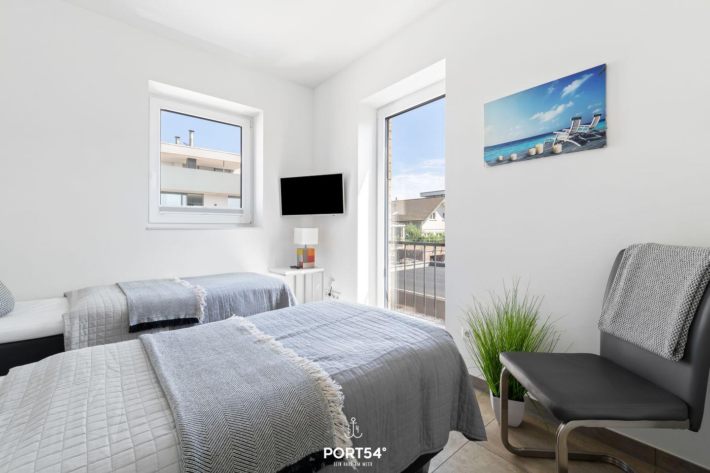 Die Ferienwohnung bietet drei komfortable Schlafzimmer, die alle mit hochwertigen Boxspringbetten ausgestattet sind. Zwei der Schlafzimmer verfügen über Doppel-Boxspringbetten (1?x?180?x?200?cm und 1?x?160?x?200?cm), während das dritte Schlafzimmer mit zwei Einzel-Boxspringbetten eingerichtet ist. Jedes Schlafzimmer bietet zudem einen eigenen Flachbild-TV, sodass jeder Gast seinen persönlichen Rückzugsort hat.