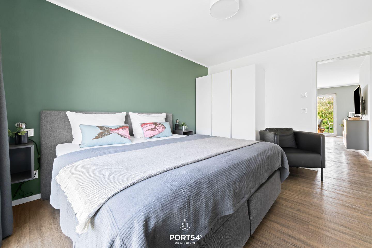 Das Hauptschlafzimmer hat ein Doppelbett und das zweite Schlafzimmer bietet zwei Einzelbetten. Der Wohnbereich mit Kamin und Flachbildfernseher sorgt für Gemütlichkeit, die offene Küche ist voll ausgestattet. Das Bad bietet Whirlpool-Badewanne und Infrarot-Sauna. Für Kinder gibt es Reisebett, Hochstuhl, Tritthocker und Spielsachen. Die Terrasse hat Gartenmöbel, Strandkorb, Sonnenschirm und Grill. PKW-Stellplatz und Fahrradschuppen sind vorhanden. Perfekt für Familien und Paare!
