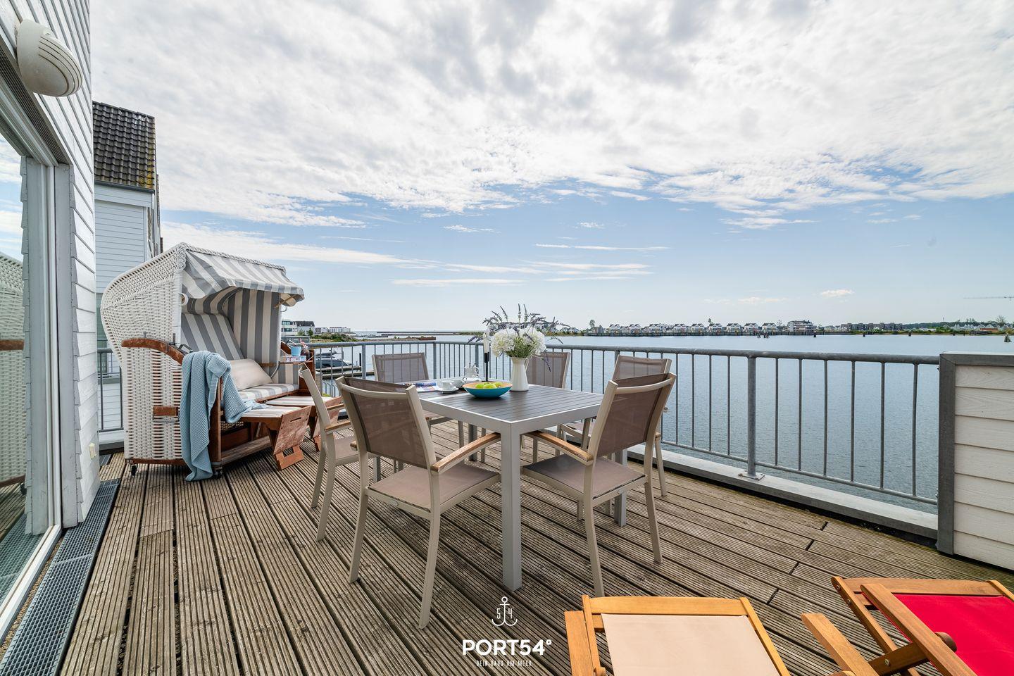 Von hier aus gelangst Du auf den Balkon, von dem Du einen traumhaften Blick auf das Hafenbecken des OstseeResorts genießt.