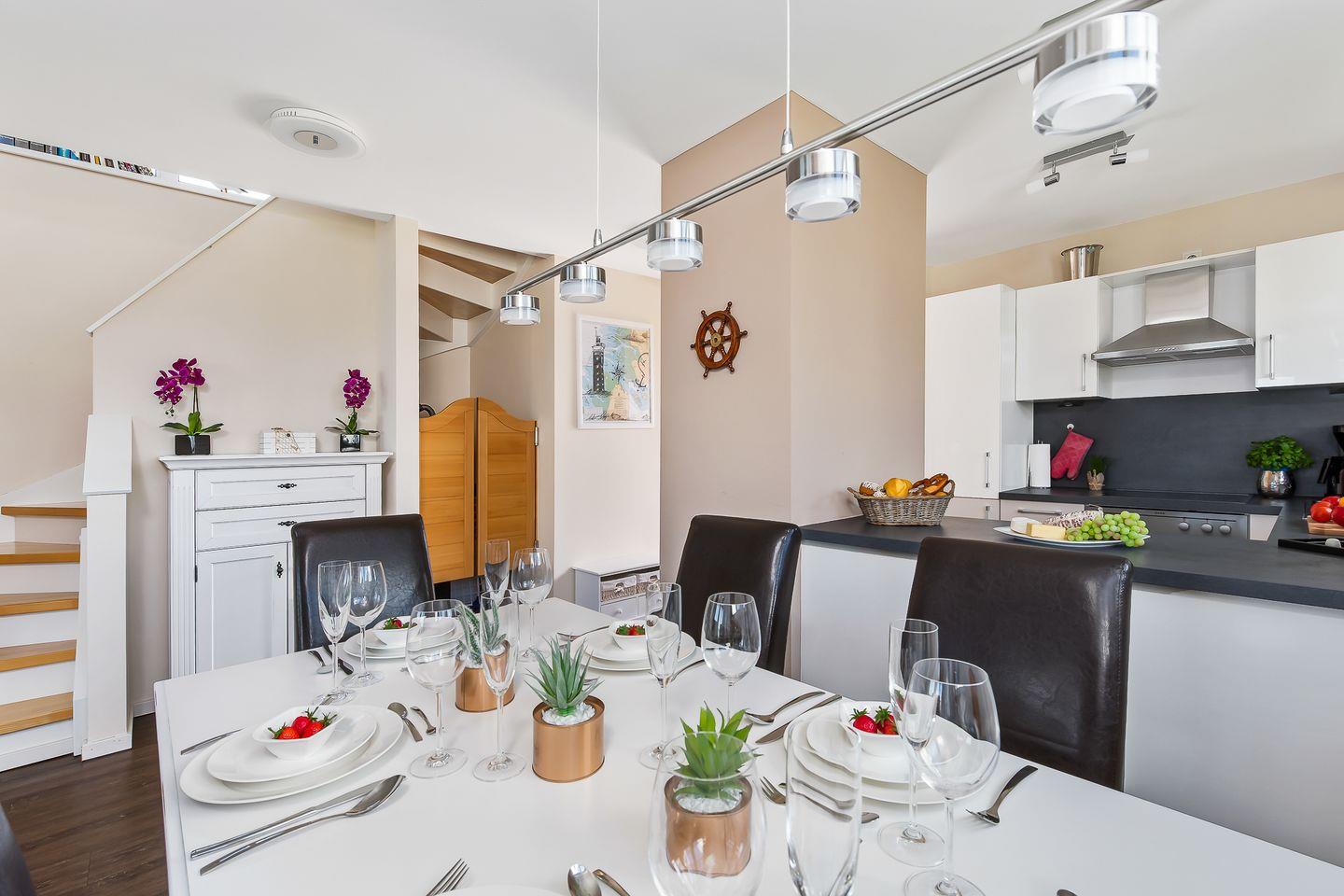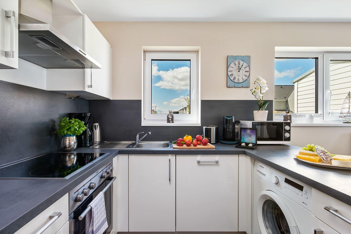 Die voll ausgestattete Küche begeistert Dich als Hobbykoch mit einer Espressomaschine, einem Eierkocher, einem Waffeleisen und vielen weiteren Kochutensilien.