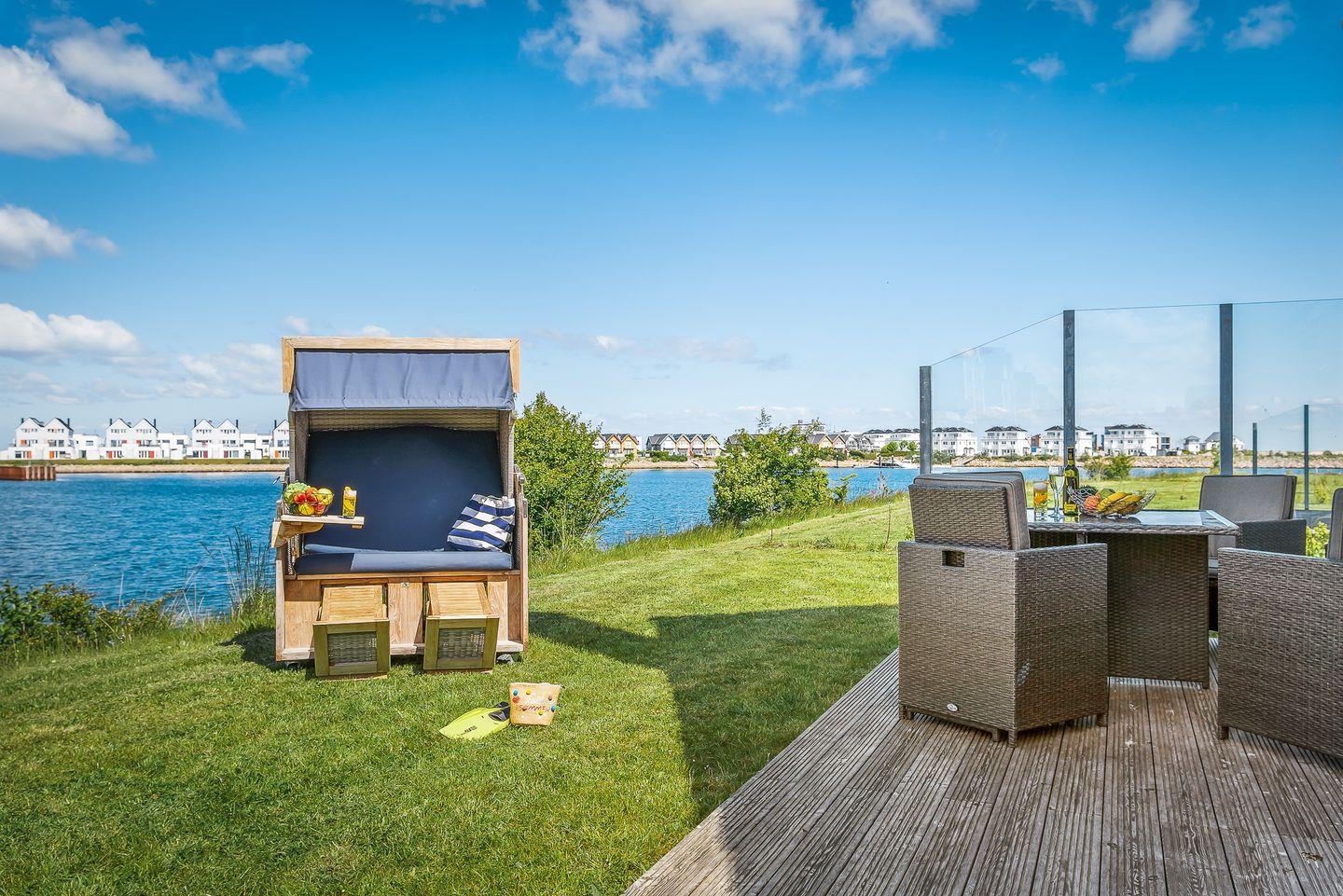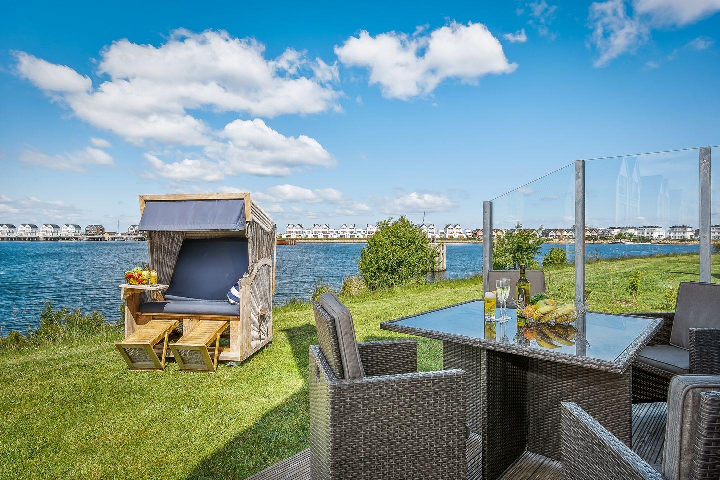 Das Ferienhaus "Hansekogge" im OstseeResort Olpenitz bietet Platz für bis zu sechs Personen. Direkt am Hafenbecken gelegen, bietet der großzügige Wohn- und Essbereich mit offener Küche einen traumhaften Blick auf die Marina. Die Küche ist voll ausgestattet, und der Wohnbereich lädt mit Kamin ein. Die Terrasse mit Gartenmöbeln, Strandkorb und Grill bietet Erholung pur. Zwei Schlafzimmer, Wellnessbad mit Whirlwanne und Infrarot-Sauna, PKW-Stellplätze und Nähe zum Strand runden das Angebot ab.