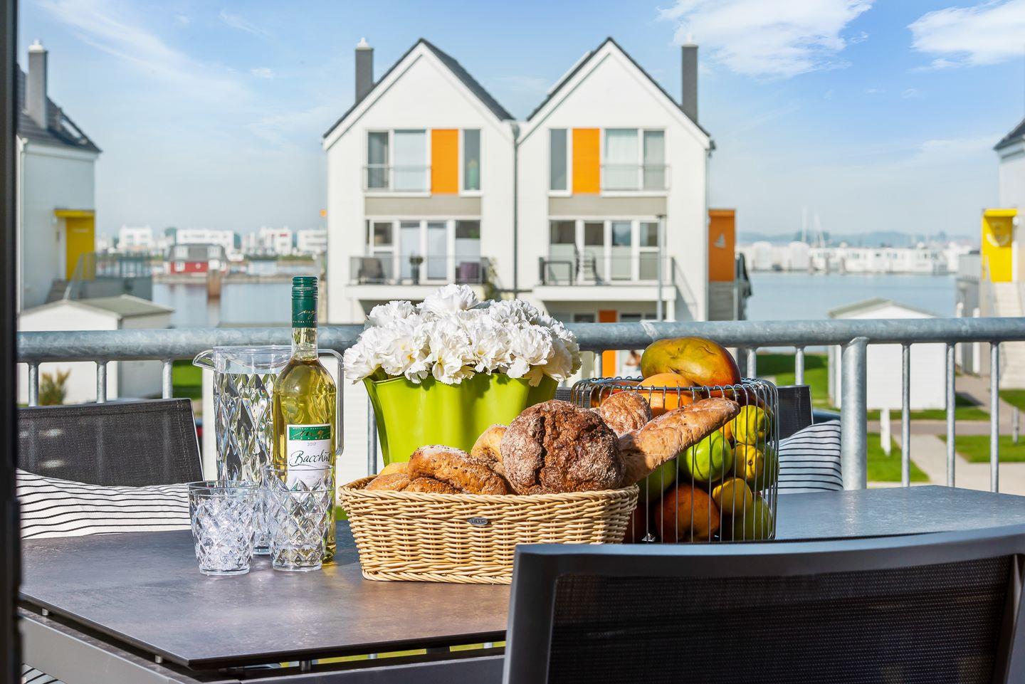 Ein weiteres Highlight der „Ocean Breeze“ ist der Süd-Balkon, auf dem Du die frische Meeresluft sowie die Aussicht auf das Hafenbecken genießen kannst. Ob bei einem Kaffee am Morgen oder einem Glas Wein am Abend – der Balkon bietet Dir den idealen Platz, um die Natur zu genießen und die Gedanken schweifen zu lassen.