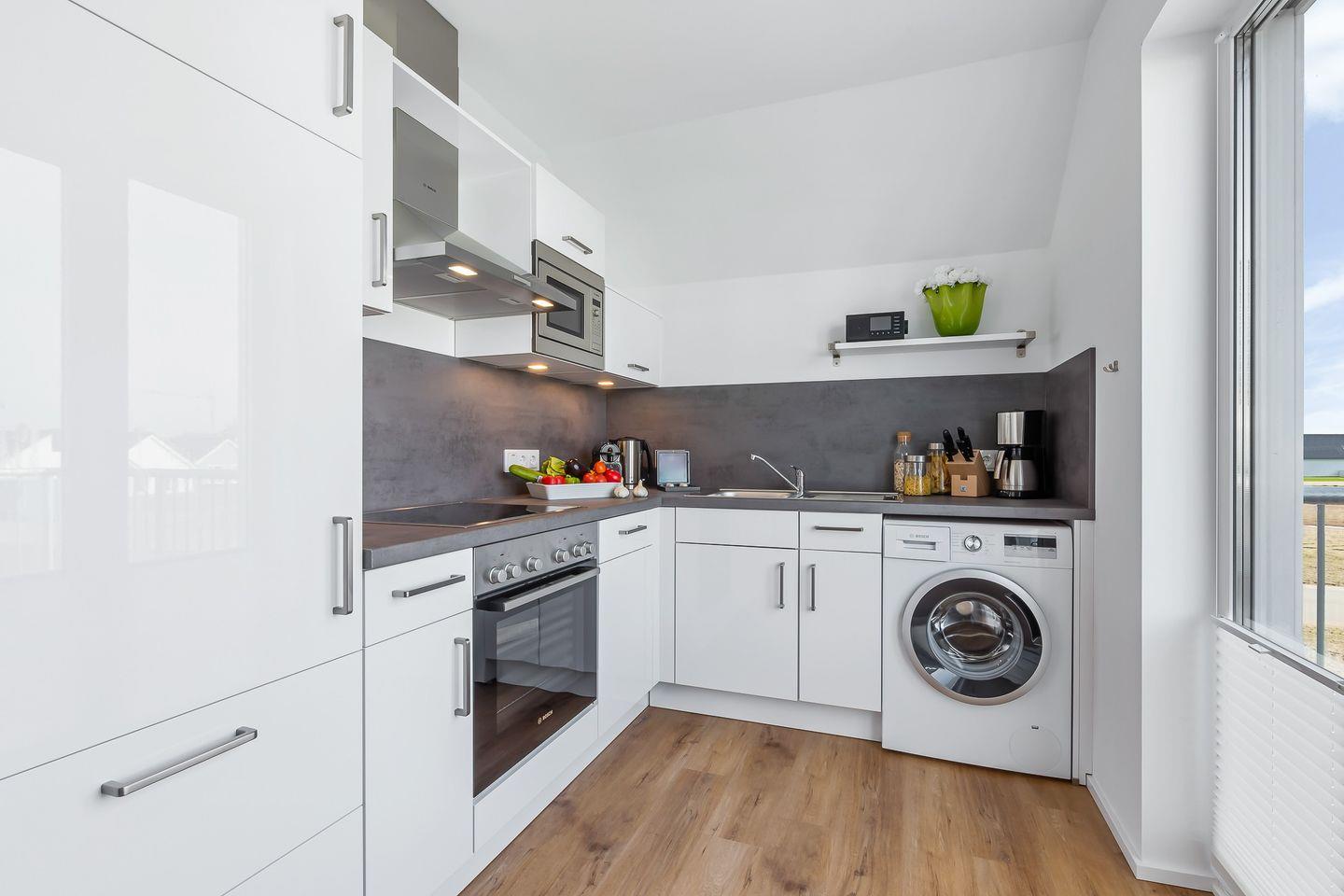 Angrenzend befindet sich eine moderne, voll ausgestattete Küche, in der Du Deine Lieblingsgerichte zubereiten kannst. Für besondere Entspannungsmomente steht Dir in der „Ocean Breeze“ eine Infrarot-Sauna zur Verfügung, die Du nach einem langen Tag an der frischen Luft nutzen kannst. Zusätzlich kannst Du in der luxuriösen Whirlwanne wunderbar abschalten und die Seele baumeln lassen. Im Badezimmer stehen Dir außerdem ein Handtuchheizkörper, ein Kosmetikspiegel sowie ein Föhn zur Verfügung.