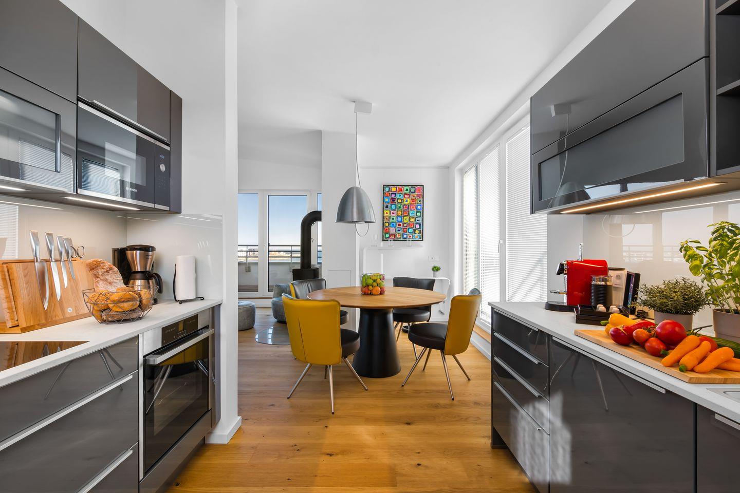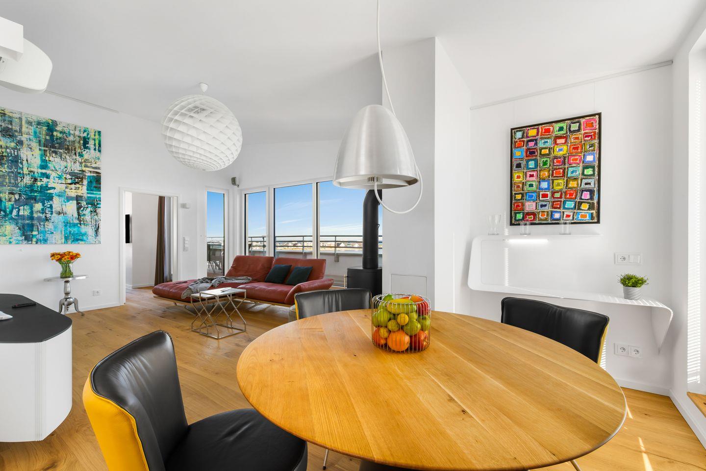 Wenn Du Kunst und Musik schätzt und gerne etwas über den Dingen stehst, dann ist dieses Penthouse mit der dreiseitigen umlaufenden Dachterrasse genau das Richtige für Dich.