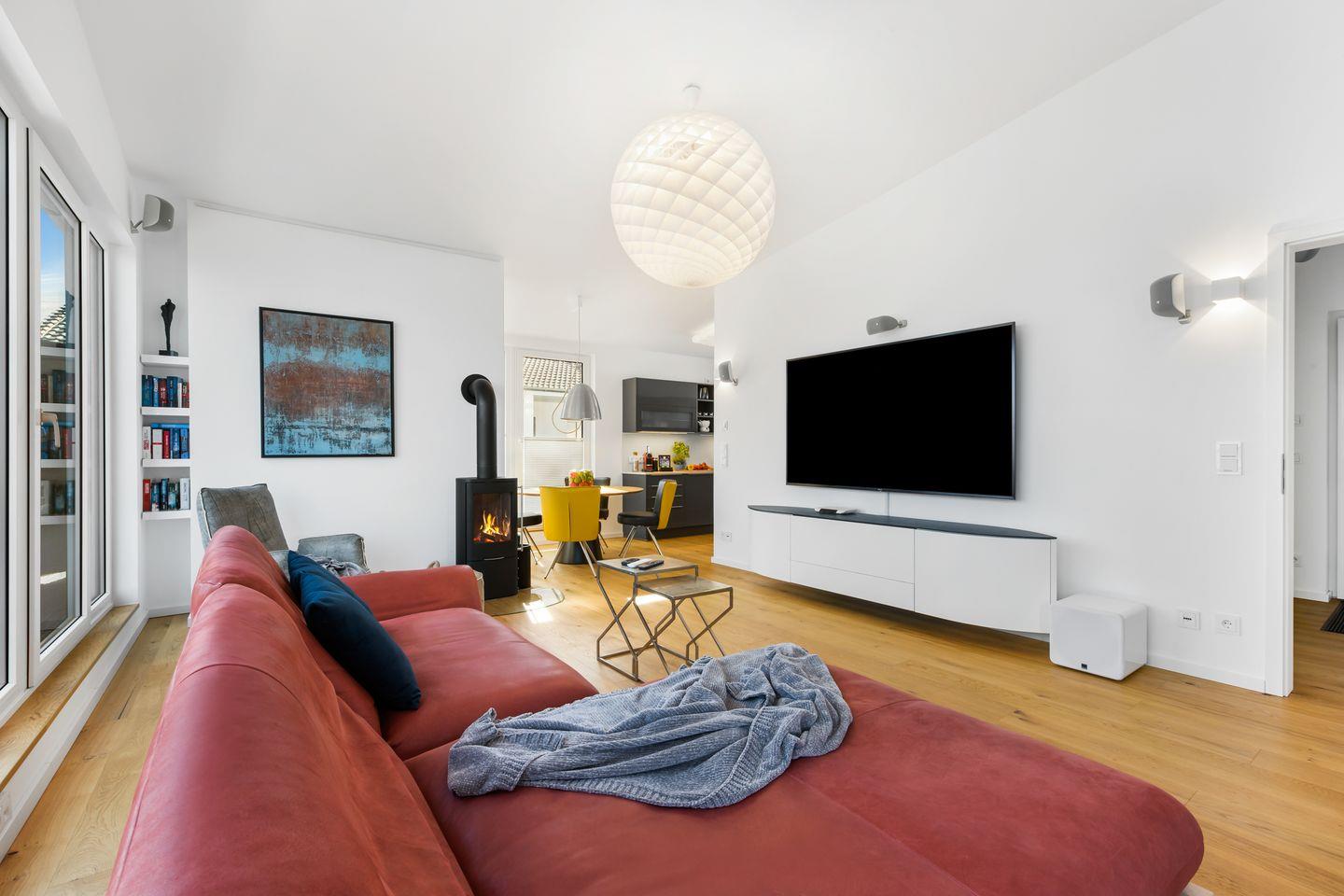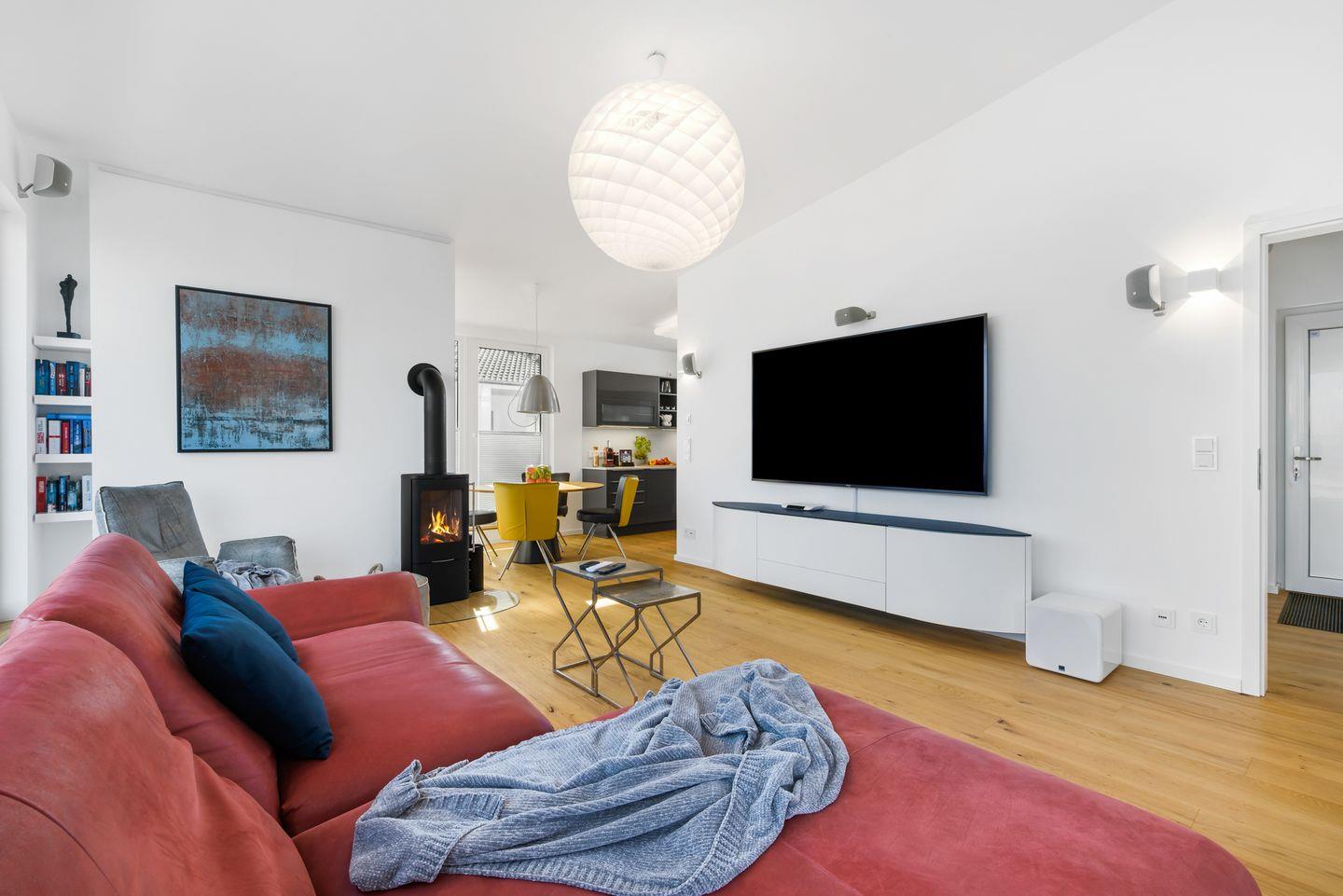 Neben dem Kaminofen, der an weniger sonnigen Tagen für wohlige Gemütlichkeit sorgt, lädt Dich die Dolby-Surround-Anlage mit Großbildfernseher dazu ein, einfach abzuschalten und zu genießen.