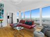 Der große lichtdurchflutete Wohn- und Essbereich mit Panoramablick über endlose Wasserflächen ist mit hochwertigen Designermöbeln und -leuchten geschmackvoll eingerichtet.