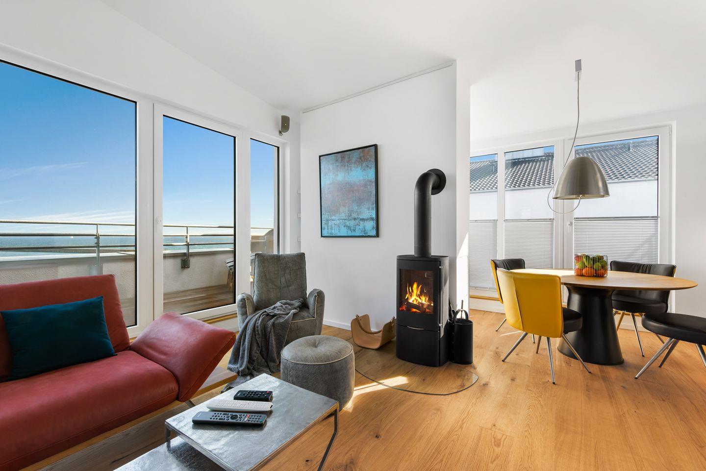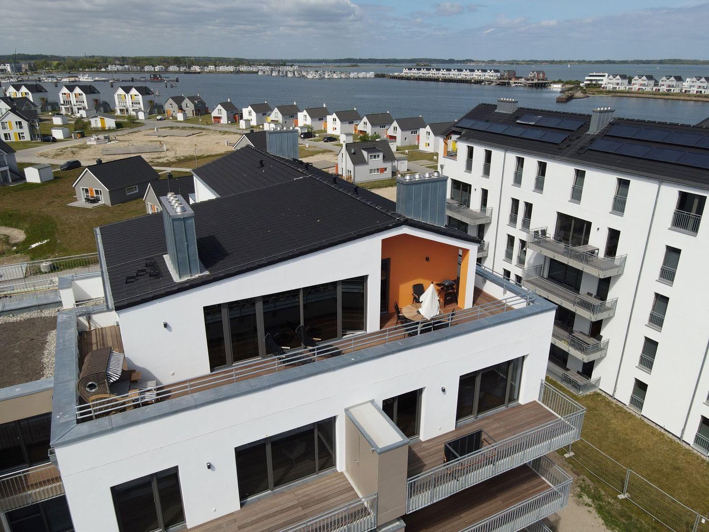 Aus allen Zimmern hast Du einen direkten Blick auf das Wasser sowie Zugang zur Dachterrasse.