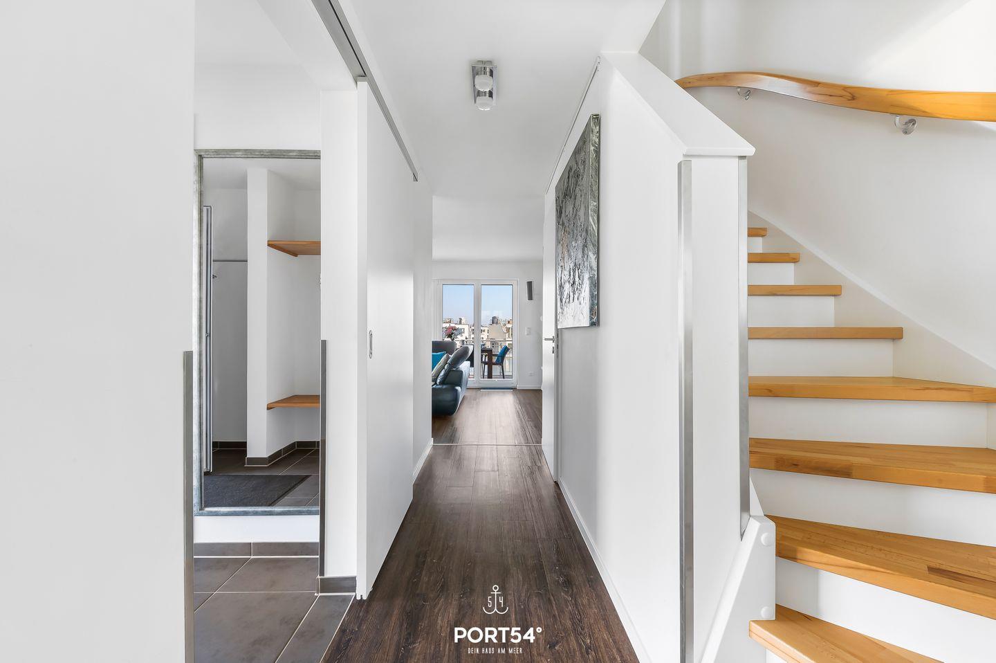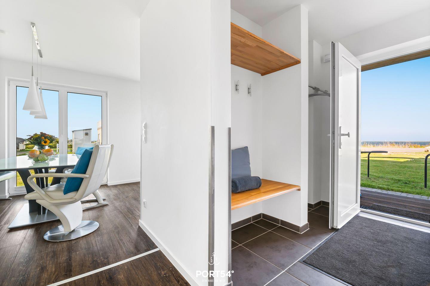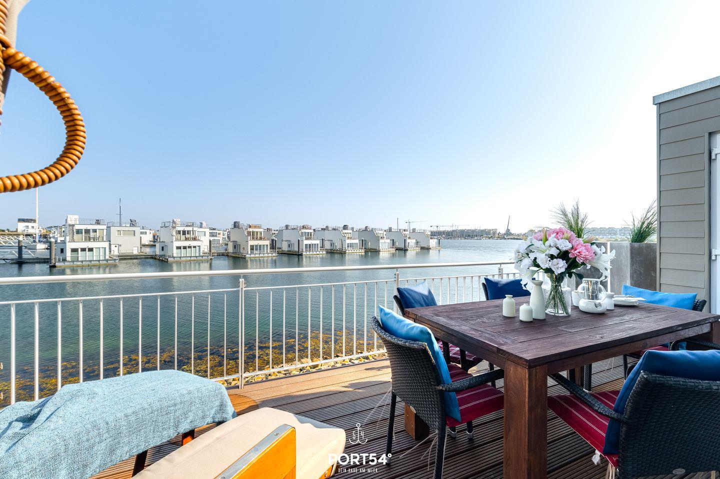 Ein weiteres Highlight der Ferienwohnung ist die großzügige Dachterrasse, von der aus Du einen atemberaubenden Panoramablick über die Ostsee genießen kannst. Hier entspannst Du auf den bereitstehenden Gartenmöbeln, genießt die frische Meeresluft und lässt Deinen Blick über die traumhafte Küstenlandschaft schweifen. Insgesamt verfügt die Ferienwohnung inklusive der Dachterrasse über vier Terrassen, die Dir aus allen Richtungen einen wunderschönen Ausblick ermöglichen.
