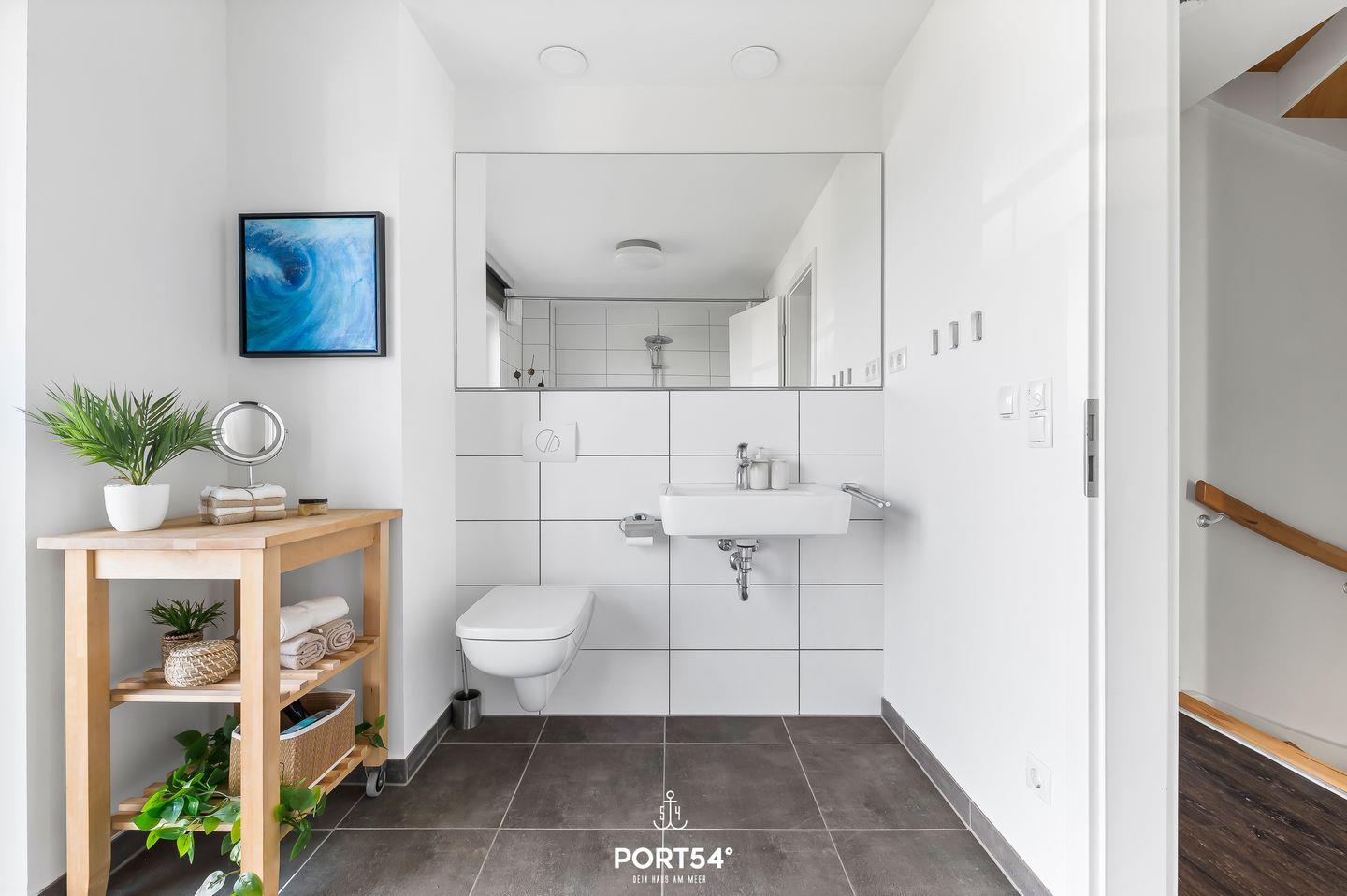 Zwei elegante Badezimmer stehen Dir im „Art Haus“ zur Verfügung. Das Hauptbadezimmer ist mit einer luxuriösen Whirlwanne ausgestattet, die Dir nach einem langen Tag Entspannung pur verspricht. Für zusätzliche Erholung sorgt die private Sauna der Ferienwohnung im zweiten Badezimmer mit Dusche. Hier kannst Du Dich nach einem erlebnisreichen Tag aufwärmen und die wohltuende Wärme genießen.