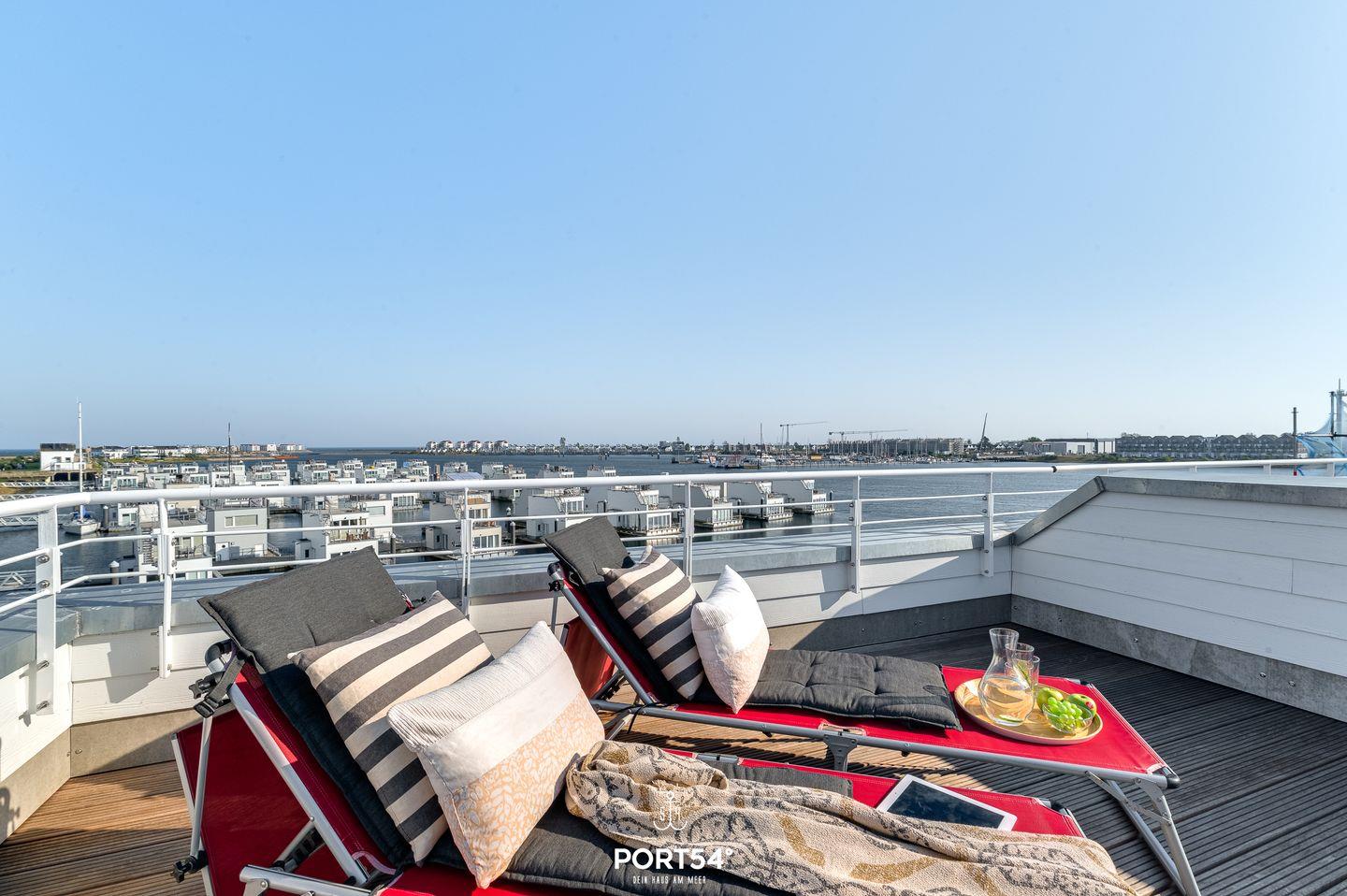 Art Haus - 1. Reihe am Wasser, 360° Dachterrasse, Sauna, Whirlwanne, Strandkorb