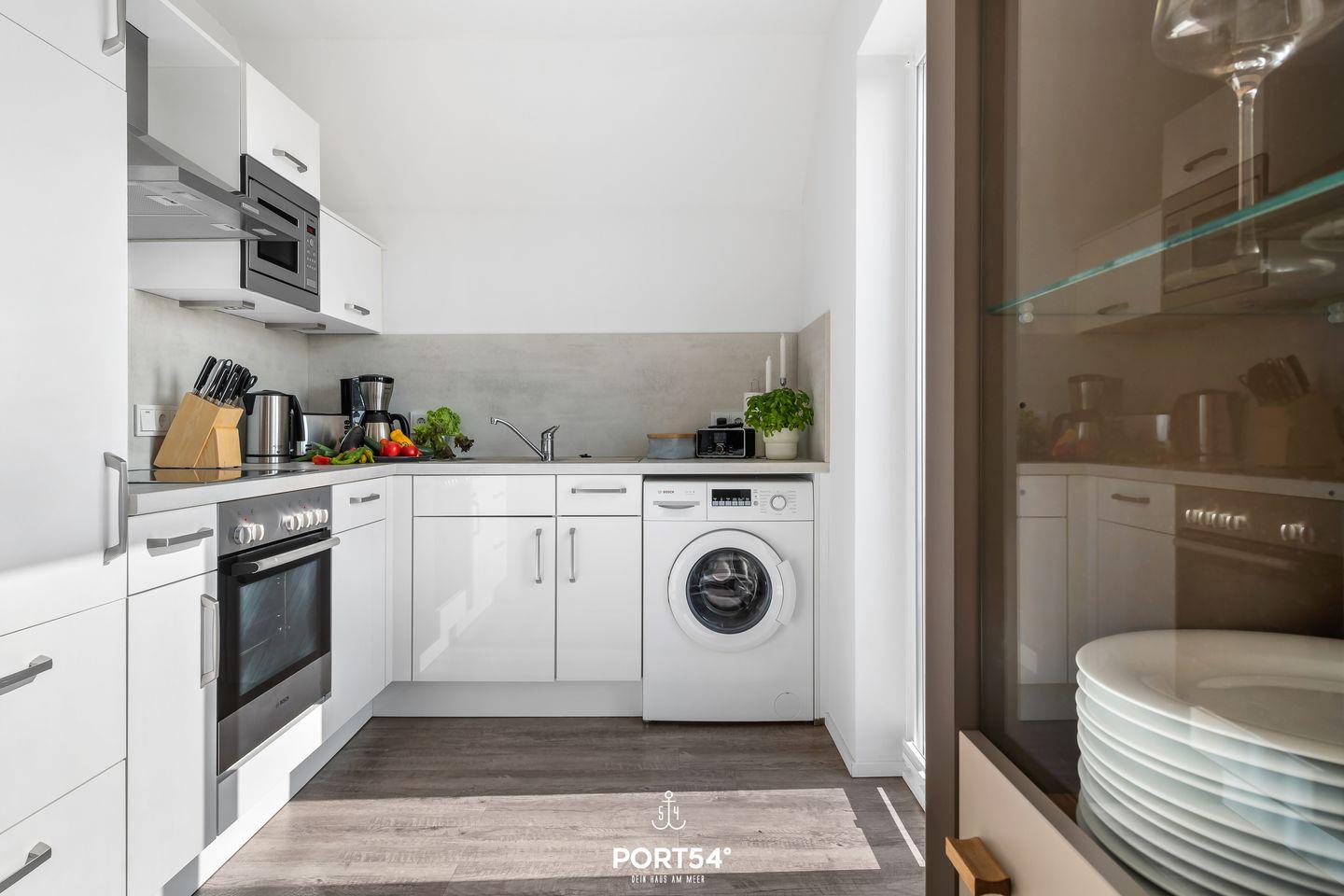 Der offen gestaltete Wohn- und Essbereich bietet Dir einen großzügigen Raum für gemeinsame Stunden. An kühleren Tagen kannst Du es Dir vor dem Kamin gemütlich machen. Die Küche ist vollständig ausgestattet und bietet Dir neben einer Spülmaschine, einer Kaffeemaschine und einer Nespresso-Maschine auch ein Gefrierfach im Kühlschrank. Zudem steht Dir während Deines Aufenthalts eine Waschmaschine zur Verfügung.
