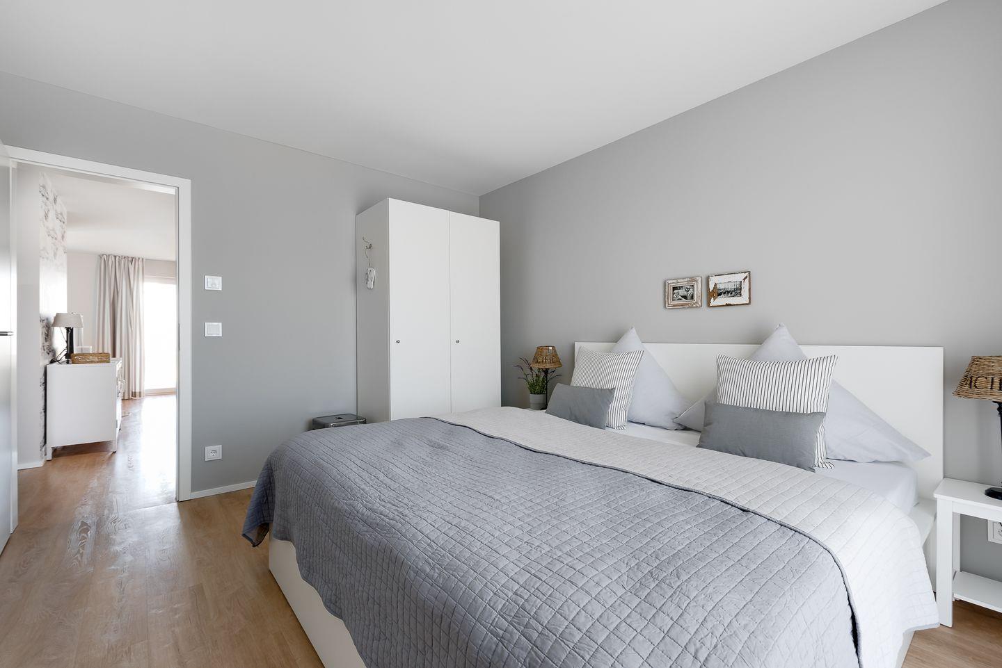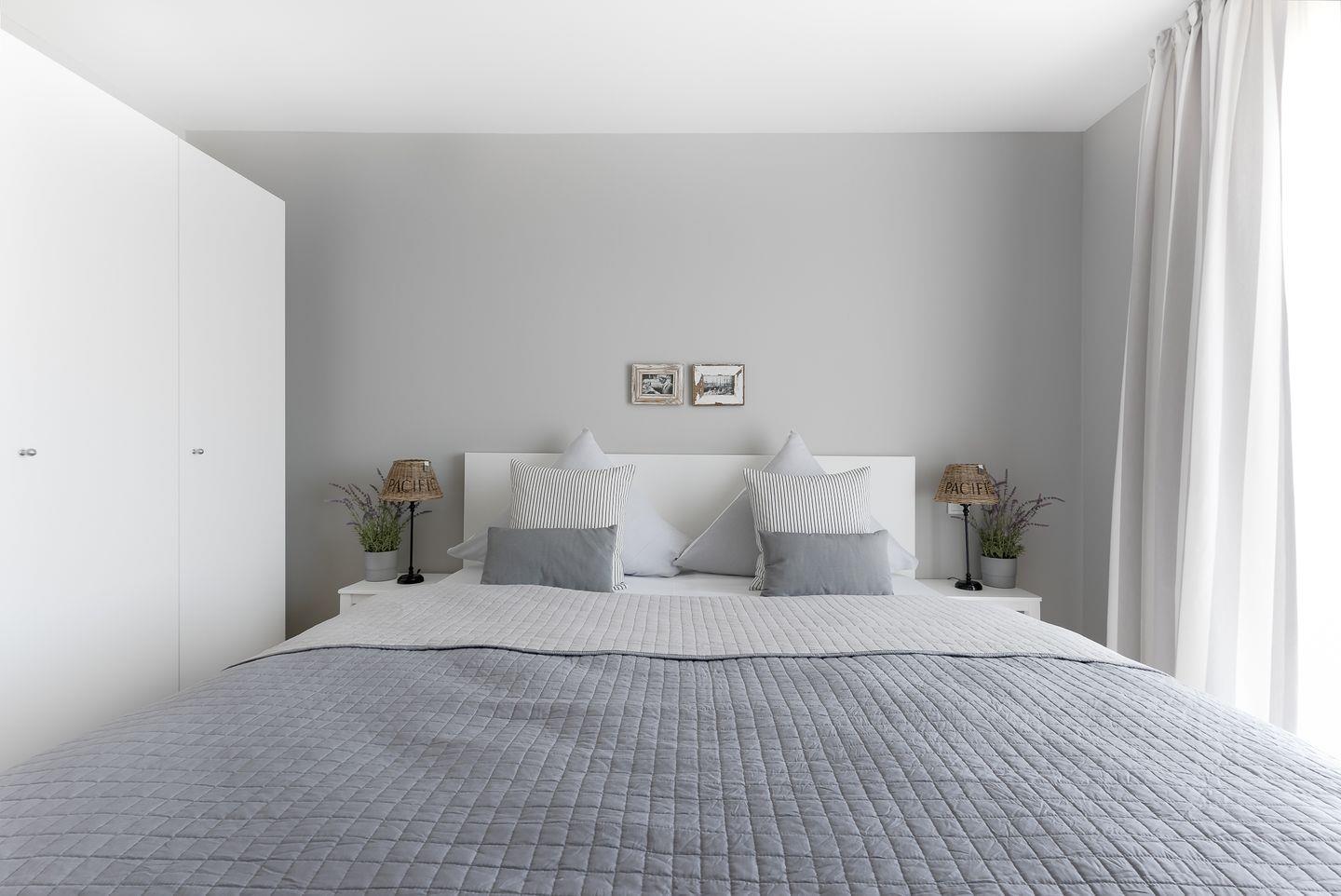 Die Ferienwohnung verfügt über zwei Schlafzimmer. Eines ist mit einem großen Doppelbett (180x200 cm) mit getrennten Matratzen sowie einem Flachbild-Fernseher ausgestattet. Das zweite Schlafzimmer bietet Dir ein Einzelbett (90x200 cm). Zusätzlich befindet sich hier ein Schreibtisch, der das Zimmer auch ideal für Dich macht, wenn Du während des Urlaubs arbeiten möchtest. Beide Schlafzimmer verfügen jeweils über einen Kleiderschrank sowie Verdunkelungsmöglichkeiten.