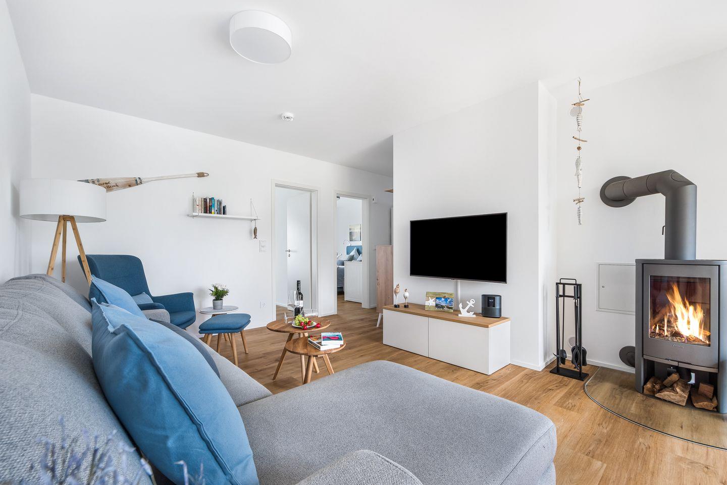 Lasse Dich auf dem Sofa von einem spannenden Film auf dem Flachbild-Fernseher unterhalten oder spiele gemeinsam eines der hauseigenen Spiele am Esstisch. An kälteren Tagen spendet Dir der Kaminofen eine wohlige Wärme.