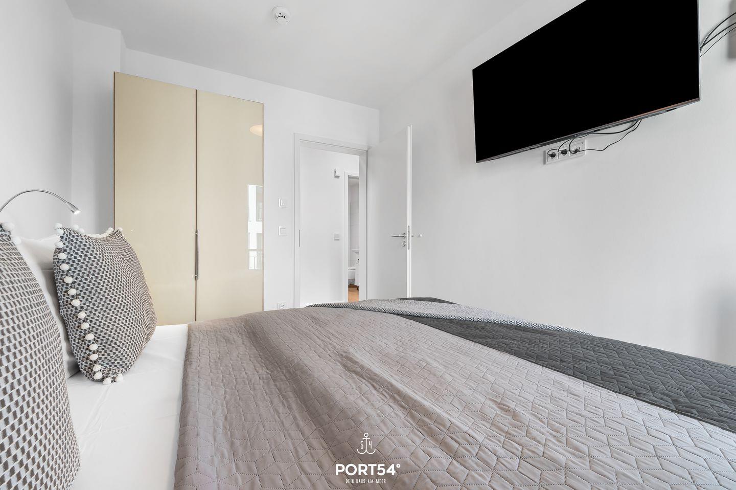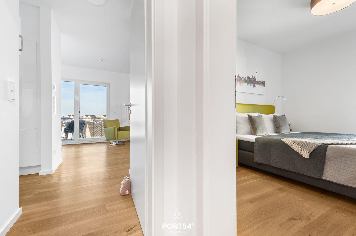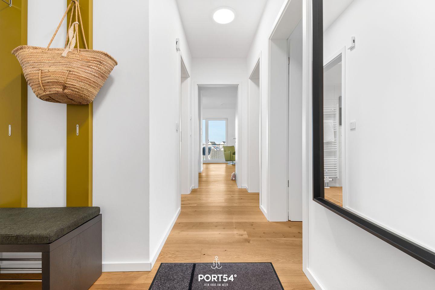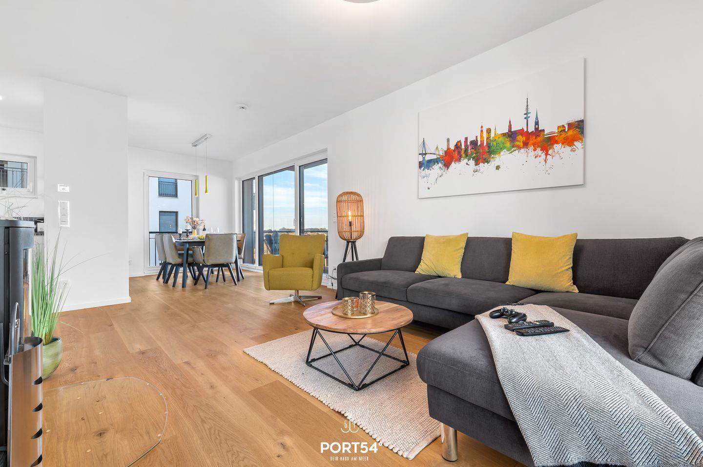 Die 76m² große Ferienwohnung "Zuhause am Meer" im 2. Obergeschoss bietet Platz für bis zu 4 Personen. Zwei Balkone bieten herrliche Ausblicke auf die Ostsee und das Resort. Die Wohnung verfügt über ein Schlafzimmer mit Boxspring-Doppelbett, ein weiteres mit zwei Einzelbetten, ein modernes Bad, eine gut ausgestattete Küche sowie einen gemütlichen Wohnbereich mit Kaminofen. Zudem gibt es einen Tiefgaragenstellplatz, Fahrradschuppen und einen Aufzug. Der Strand ist nur wenige Minuten entfernt.