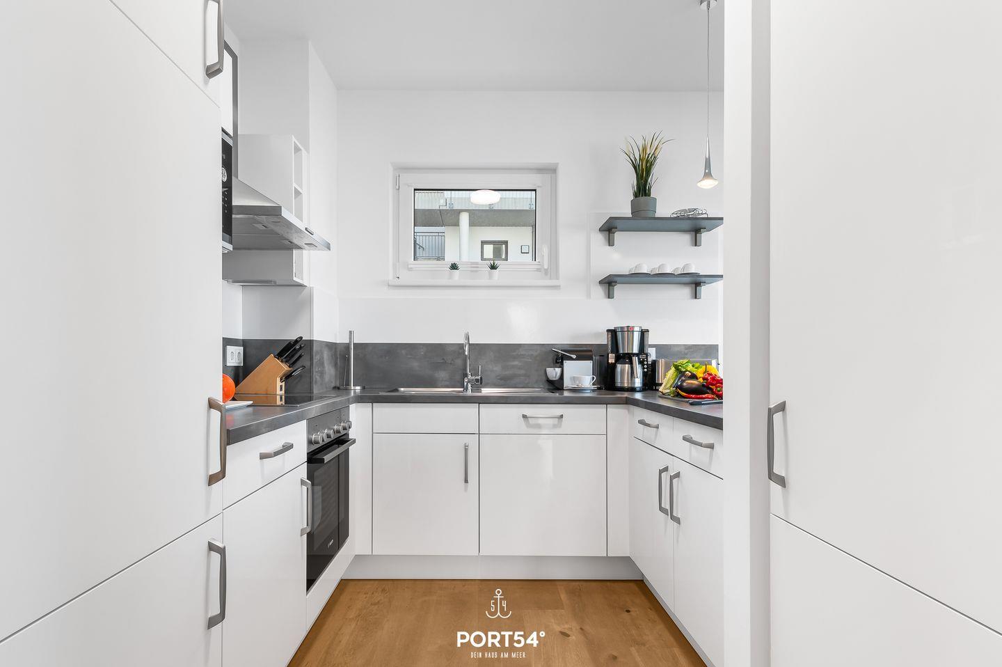 Die offene Küche ist mit einer Espressomaschine und vielem mehr hervorragend ausgestattet. Angrenzend befindet sich der Essbereich, in dem Du auch gesellige Spieleabende mit der hauseigenen Spielesammlung verbringen kannst.