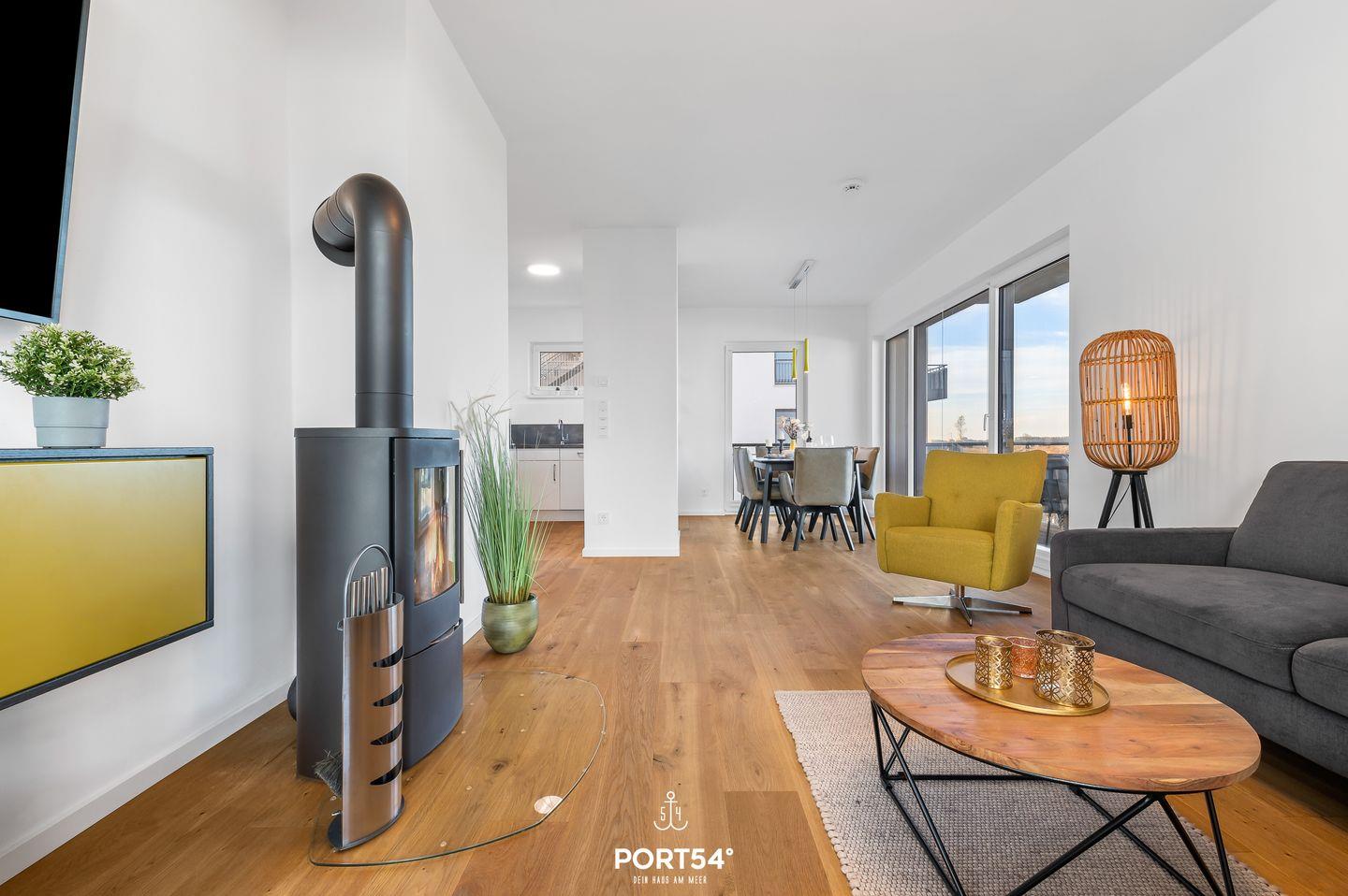 Der Kaminofen im Wohnbereich verbreitet an kälteren Tagen eine kuschelige Wärme im gesamten Wohn- und Essbereich. Hier kannst Du es Dir auf dem Sofa oder dem Sessel gemütlich machen und einen spannenden Film auf dem Flachbild-TV ansehen oder auf der Playstation 4 ein wenig spielen. Vom Wohn- und Essbereich aus gelangst Du zudem auf den zweiten Balkon mit Blick über das Resort.