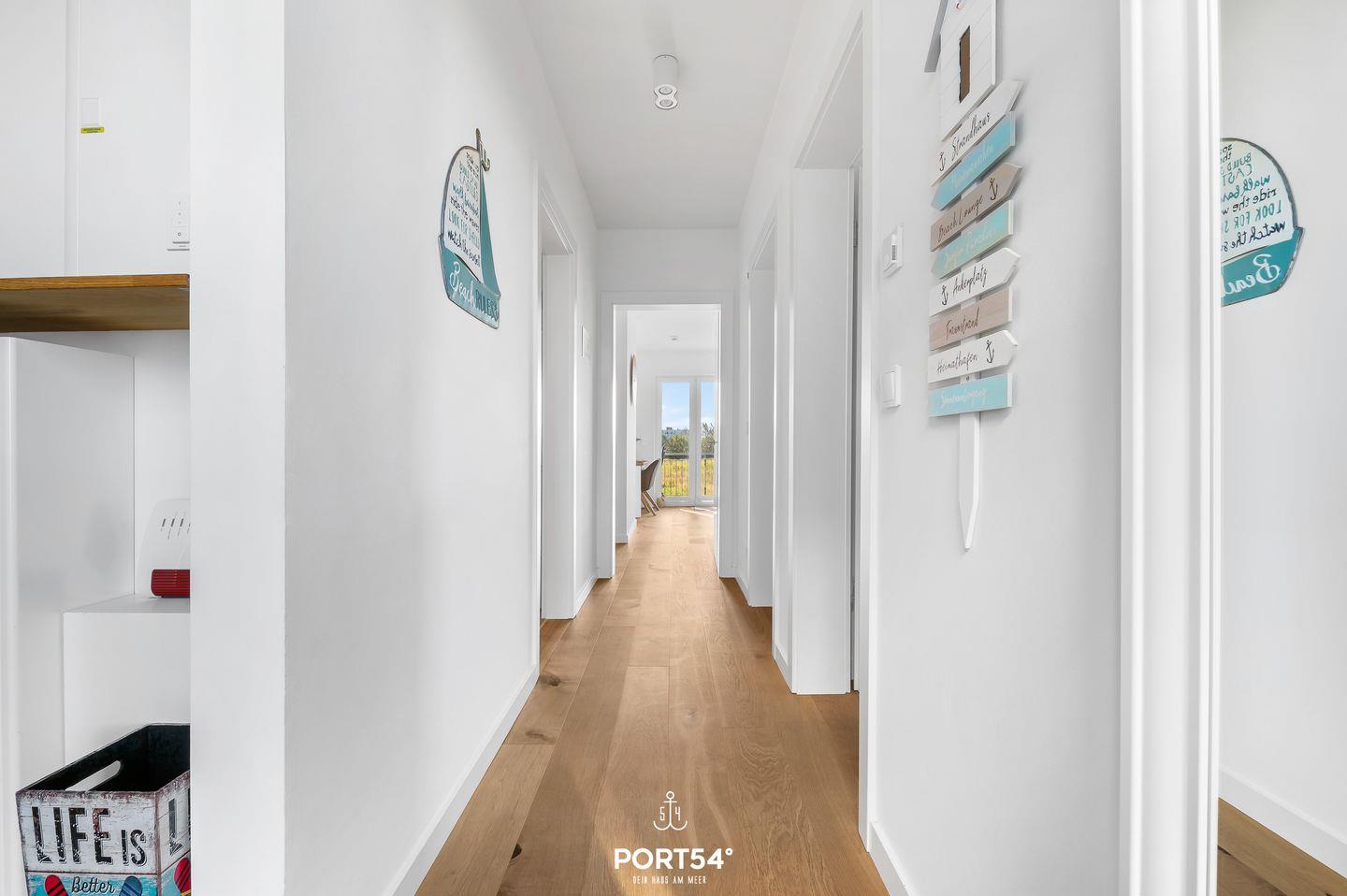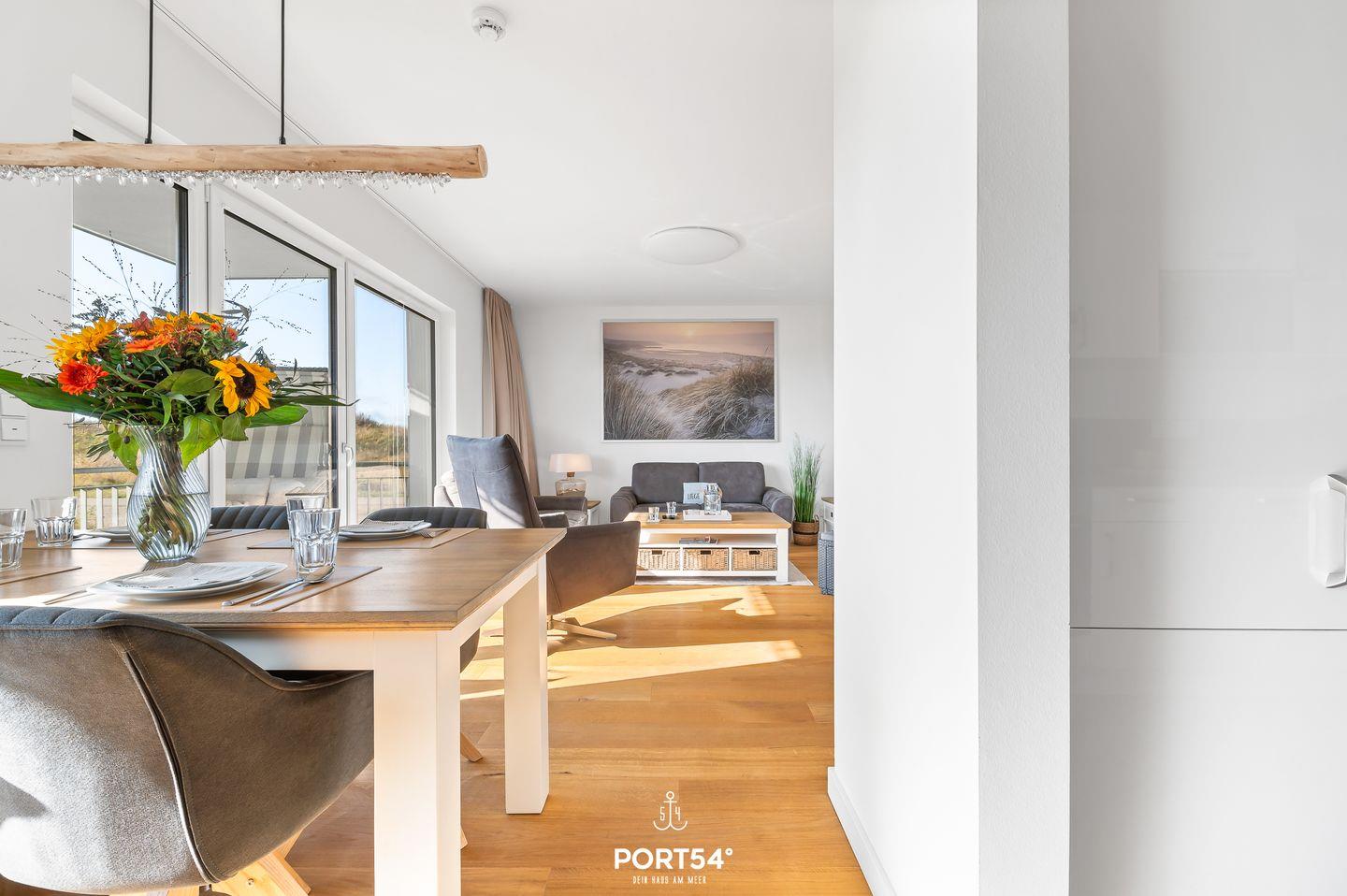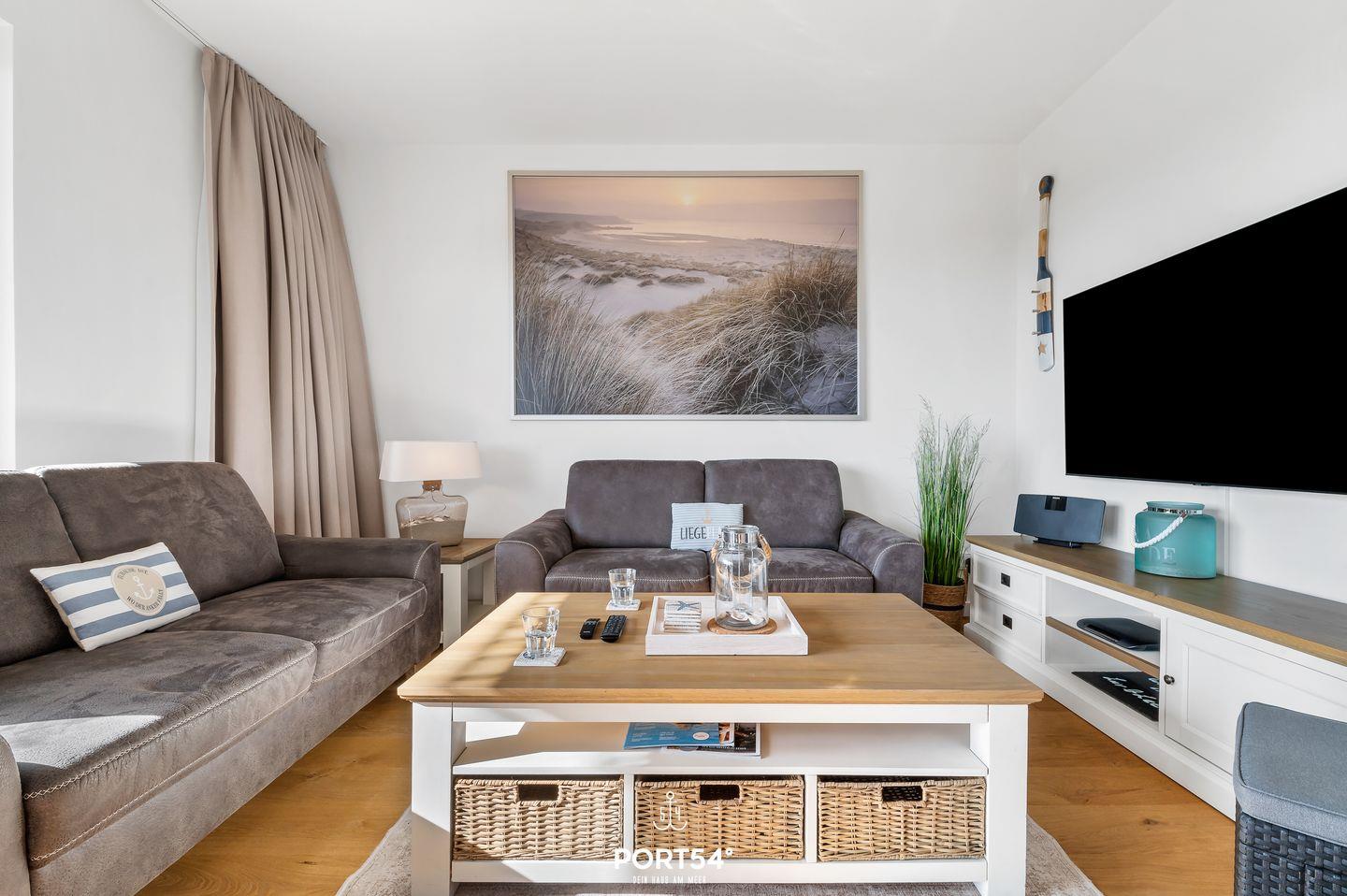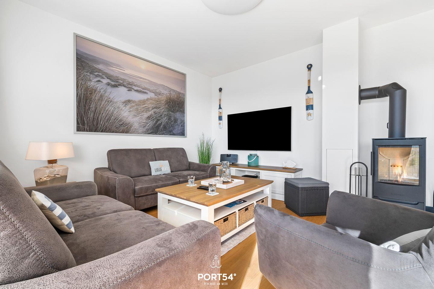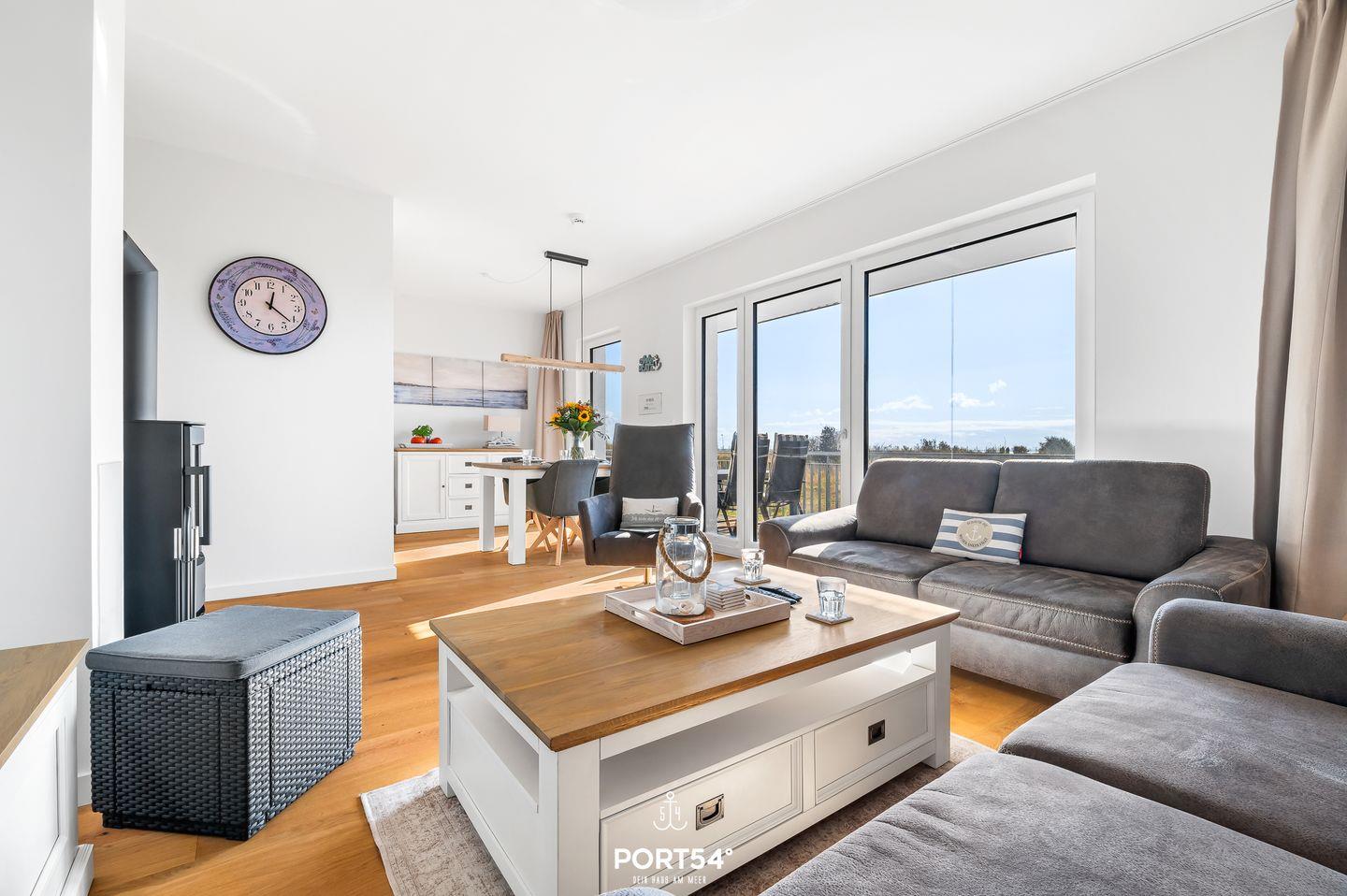 Das Apartment "Luv & Lee" bietet auf ca. 80m² Urlaubsfeeling pur. Die Wohnung befindet sich im Erdgeschoss und ist barrierearm. Der offene Wohn-/Essbereich ist modern eingerichtet. Die zwei gemütlichen Schlafzimmer bieten ein Doppelbett und 2 Einzelbetten. Es ist ein modernes Duschbad vorhanden. Weitere Highlights sind der Kamin sowie die Terrasse mit seitlichem Wasserblick. Die Küche ist hochwertig und voll ausgestattet. Zwei eigene Parkplätze sind vorhanden.