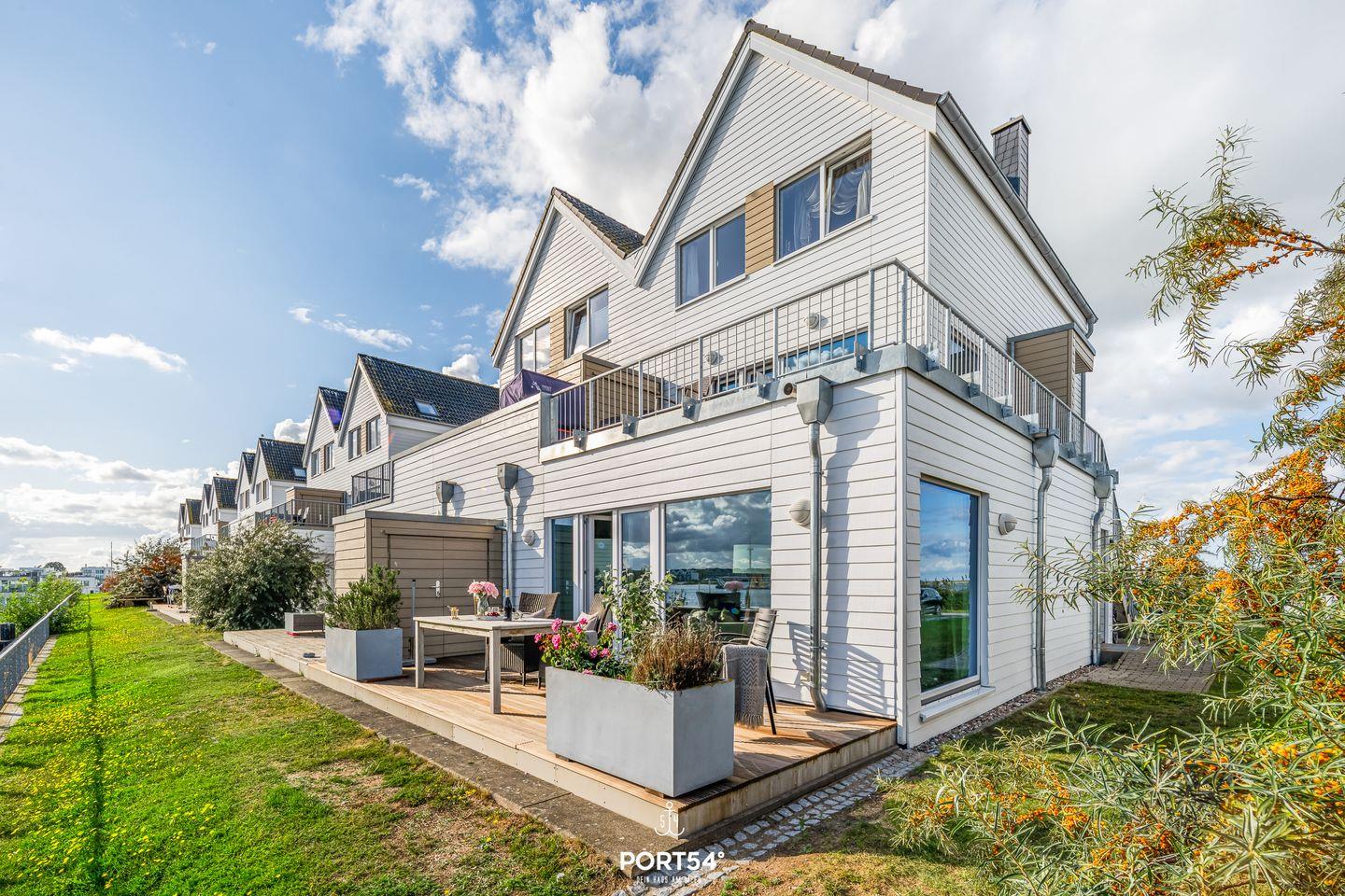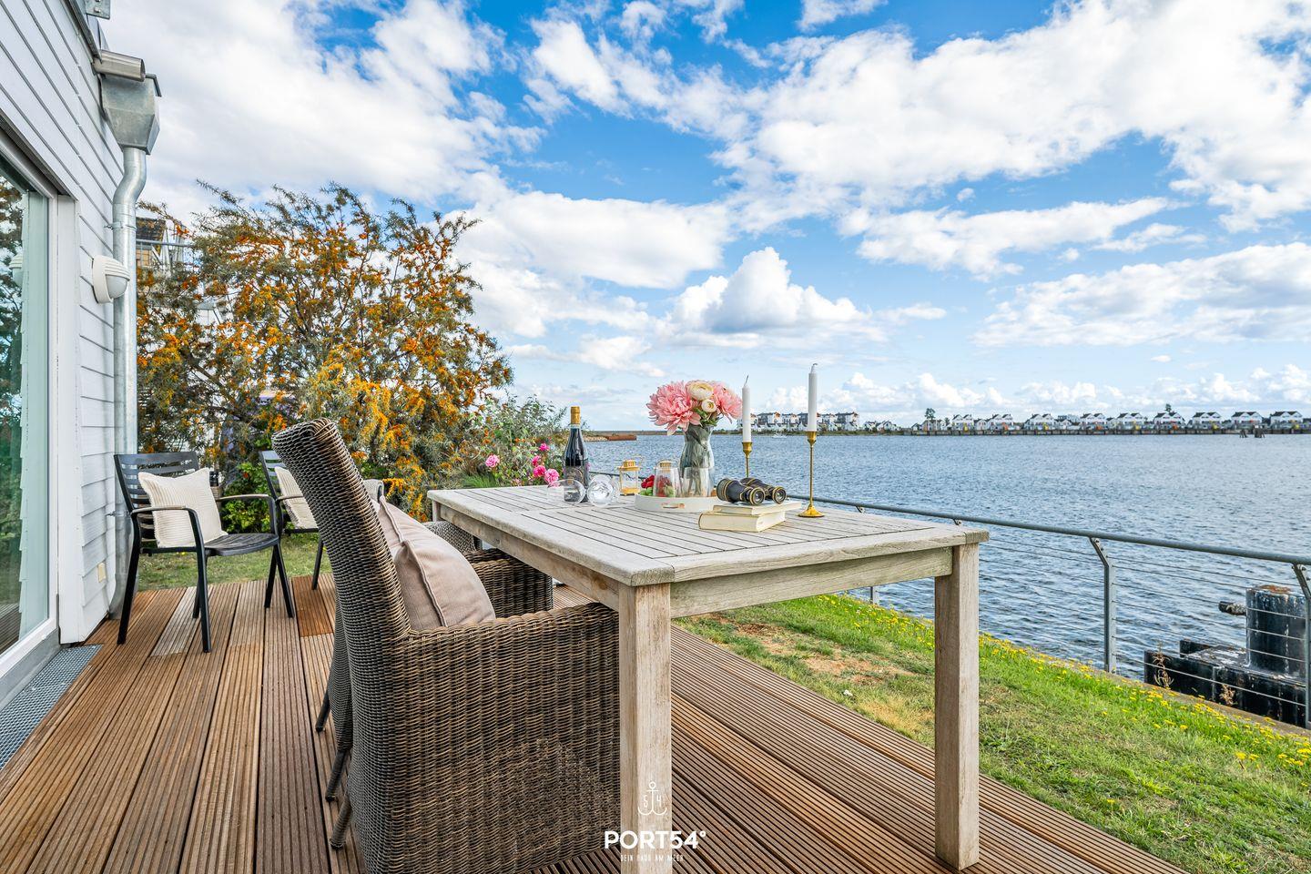Ein besonderes Highlight ist die großzügige Terrasse, die mit Gartenmöbeln und Sonnenliegen ausgestattet ist und Dir einen einzigartigen Ausblick auf das Wasser verschafft.