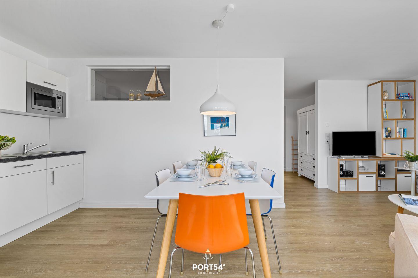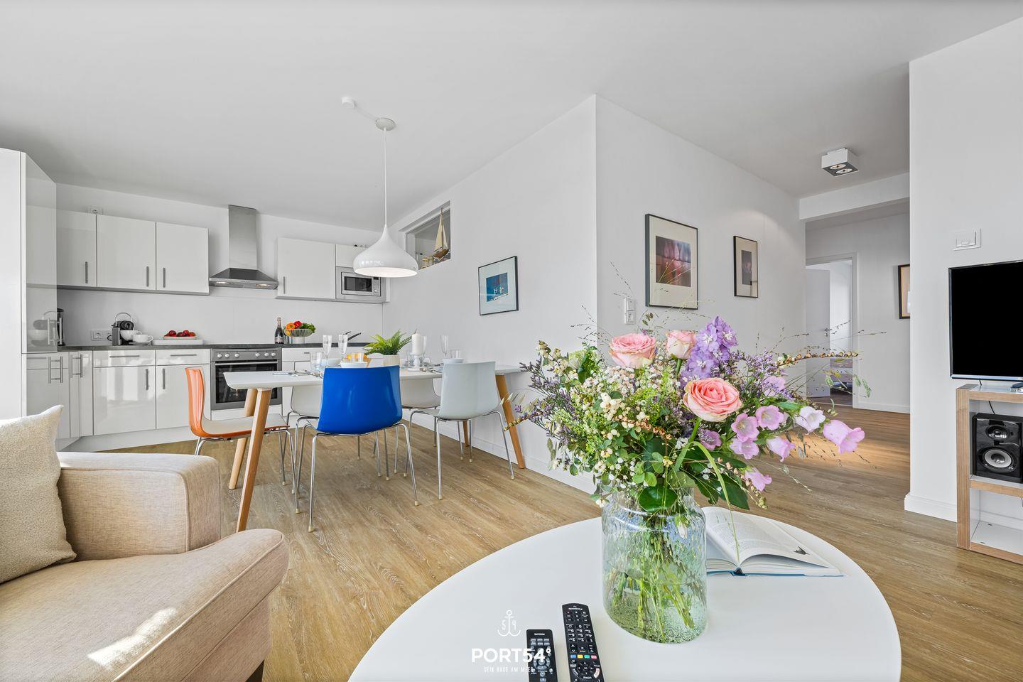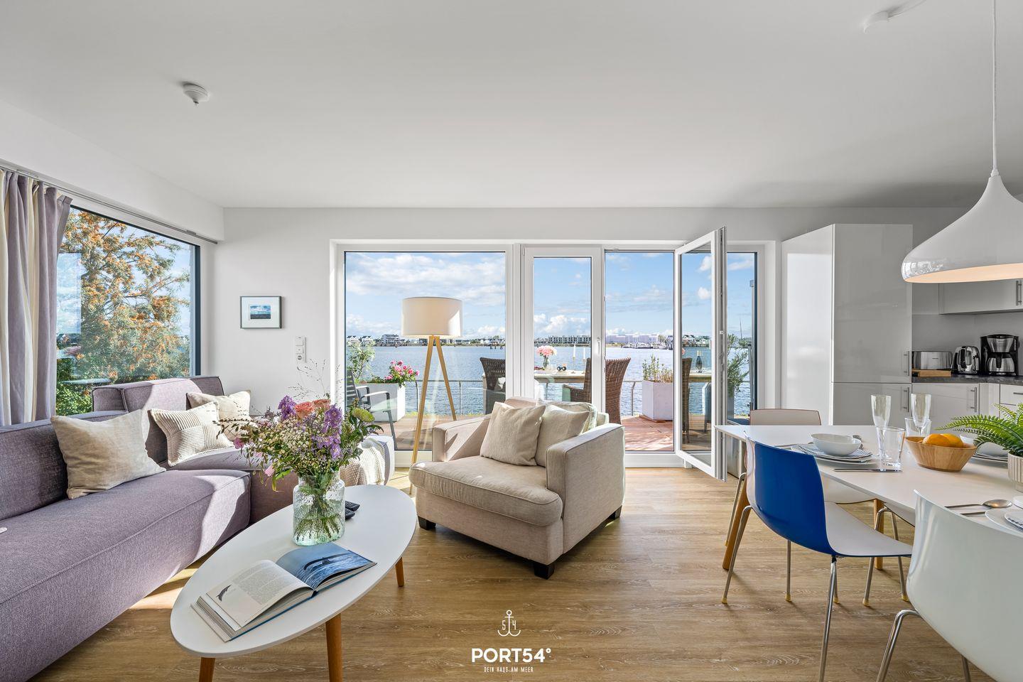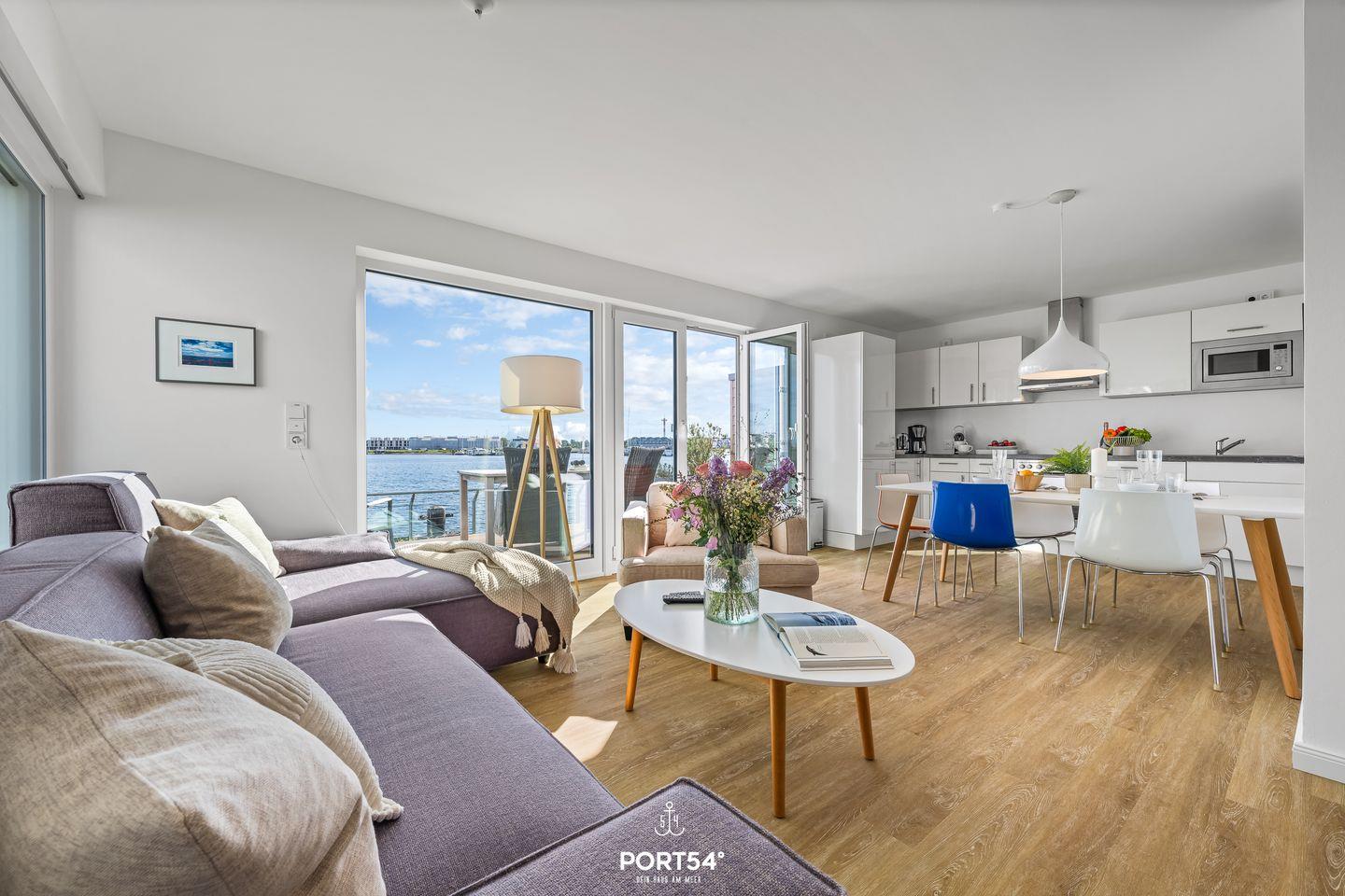 Die Ferienwohnung „Sundowner“ überzeugt durch ihre außergewöhnliche Lage direkt am Meer und bietet Dir einen eindrucksvollen Blick über das Hafenbecken.