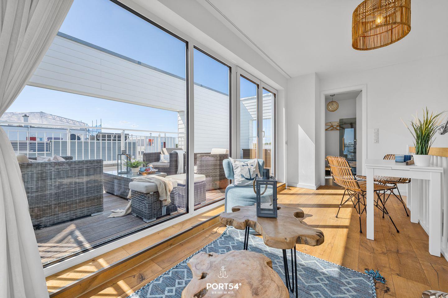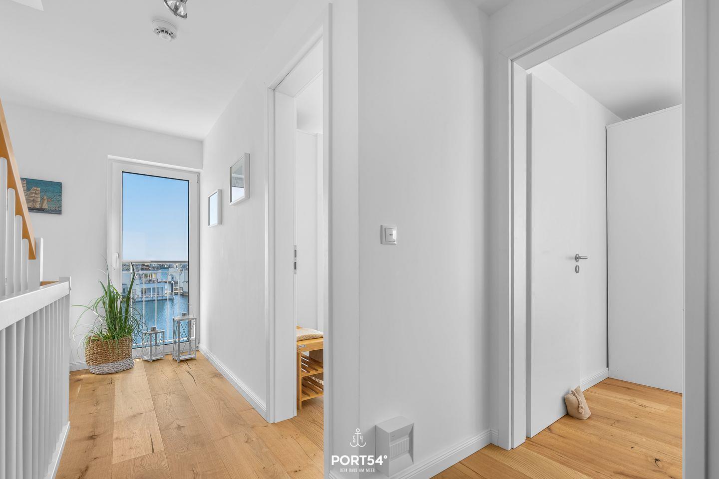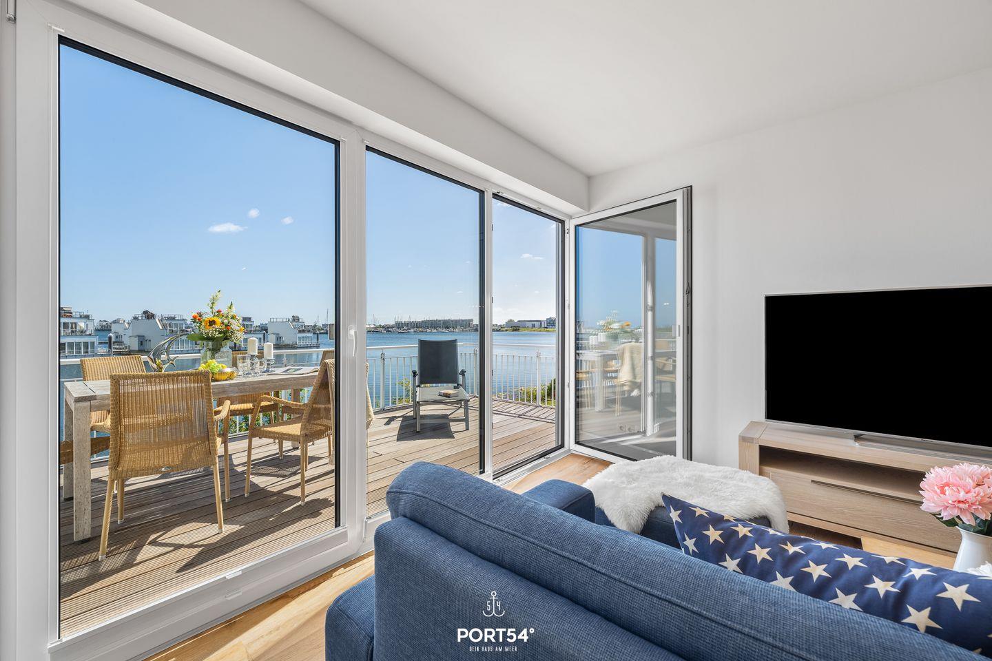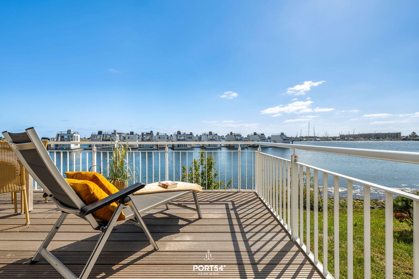 Auf der großen Terrasse sowie der Dachterrasse kannst Du entspannte Stunden im Freien genießen und dabei den atemberaubenden Blick auf das Hafenbecken bewundern. Die direkte Wasserlage macht das Haus zu einem idealen Ausgangspunkt für Strandtage, Wassersportarten oder romantische Sonnenuntergänge am Meer.