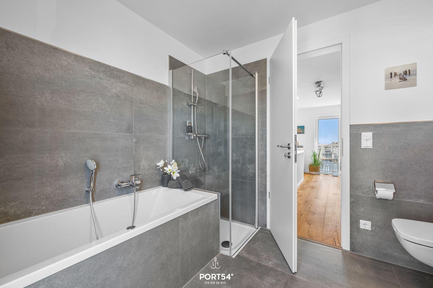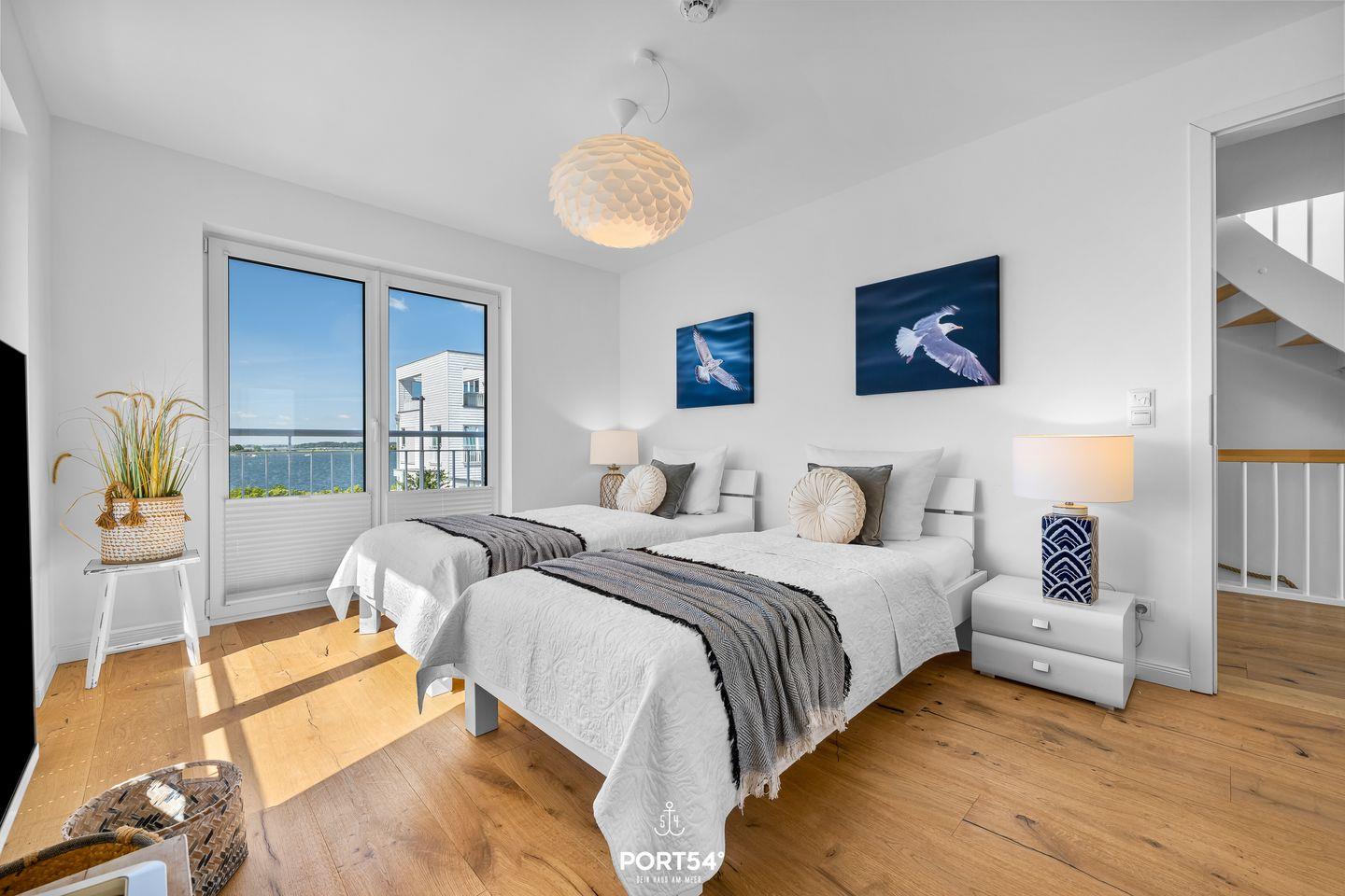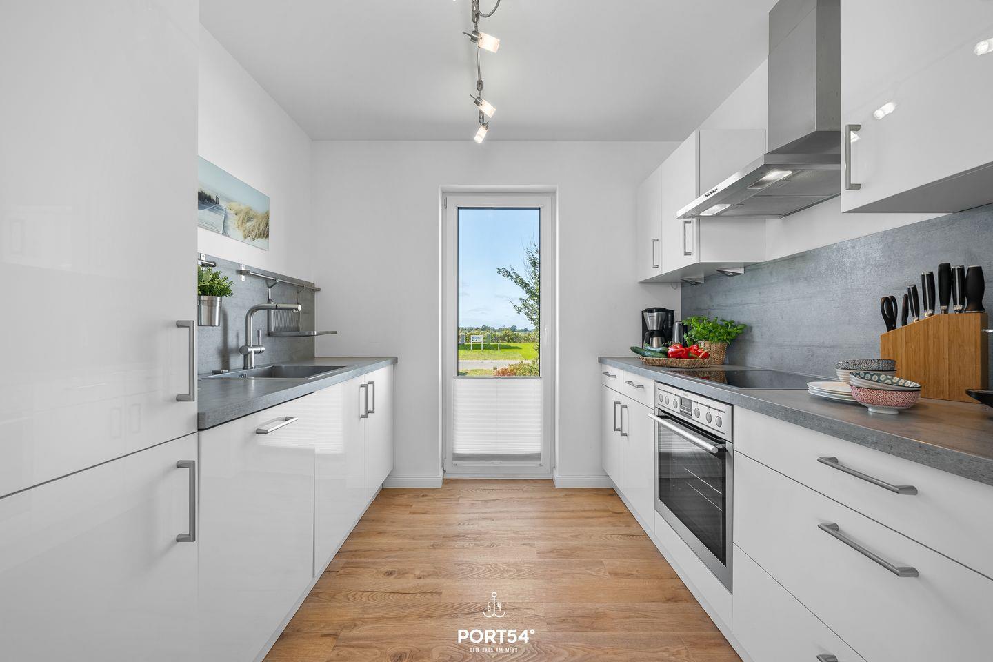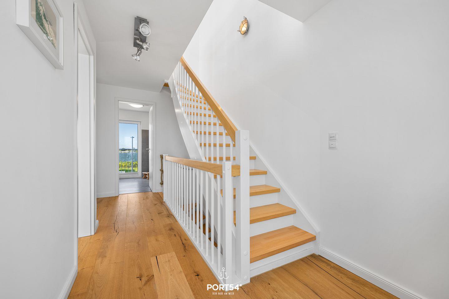 Auf der großen Terrasse sowie der Dachterrasse kannst Du entspannte Stunden im Freien genießen und dabei den atemberaubenden Blick auf das Hafenbecken bewundern. Die direkte Wasserlage macht das Haus zu einem idealen Ausgangspunkt für Strandtage, Wassersportarten oder romantische Sonnenuntergänge am Meer.