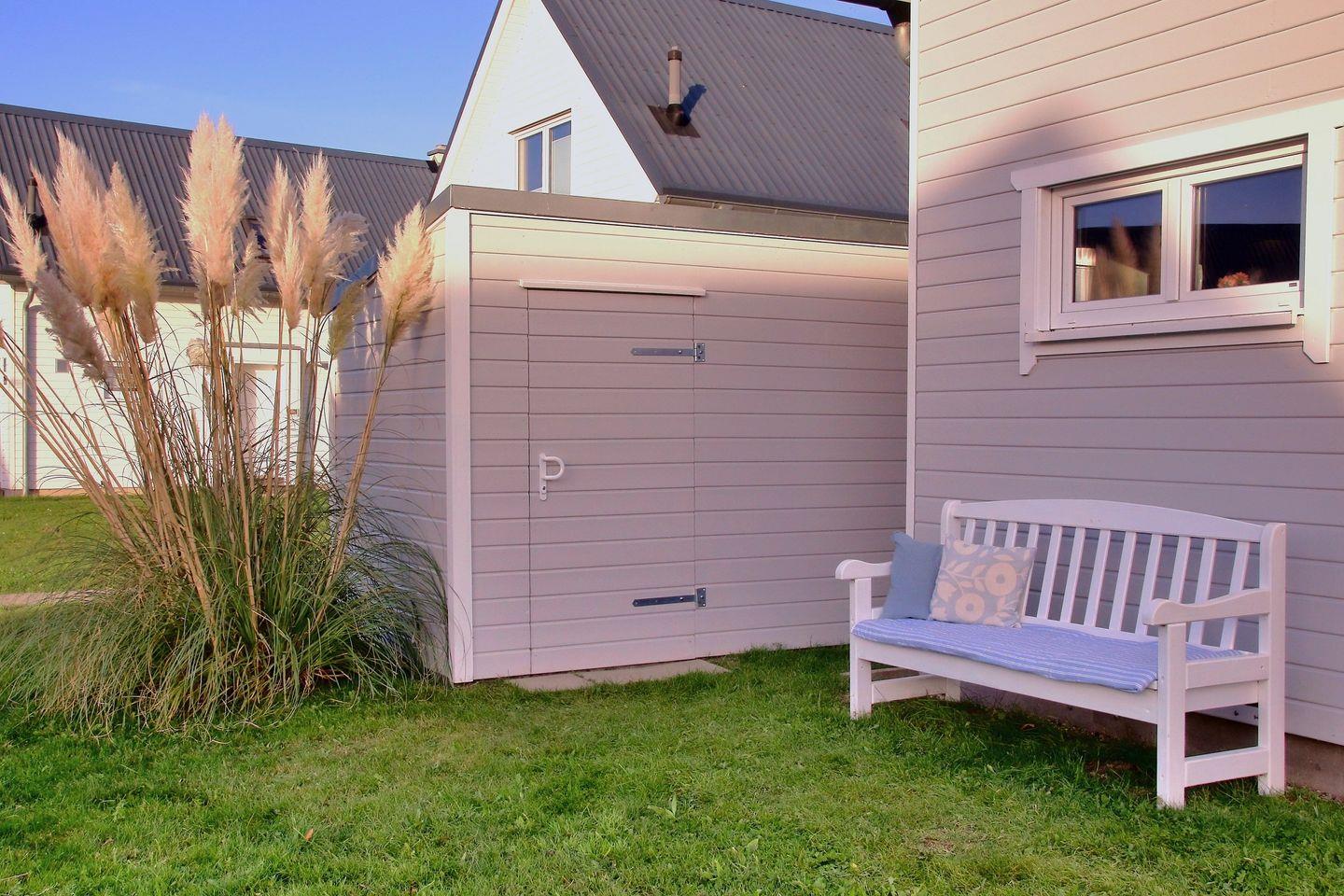 Das Ferienhaus bietet zudem praktische Extras wie einen abschließbaren Schuppen für Fahrräder und zwei Parkplätze direkt vor dem Haus.