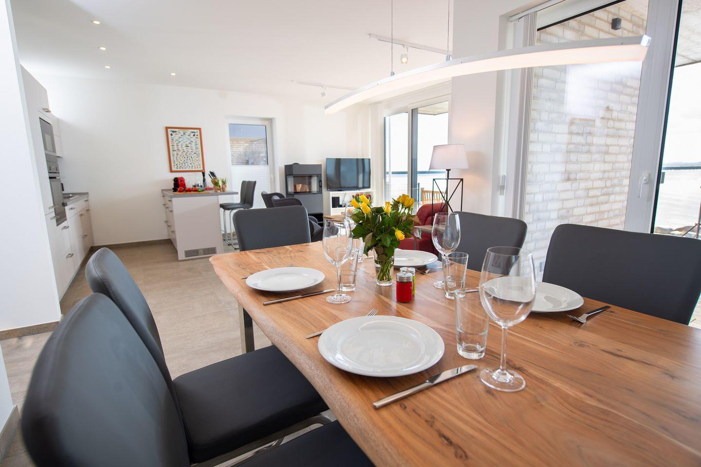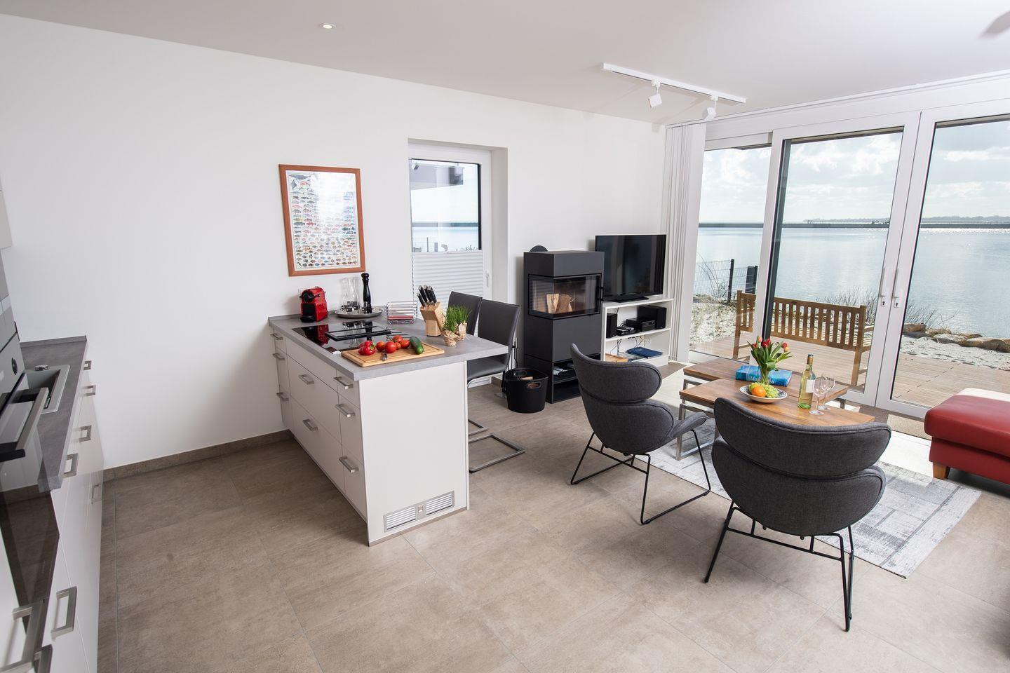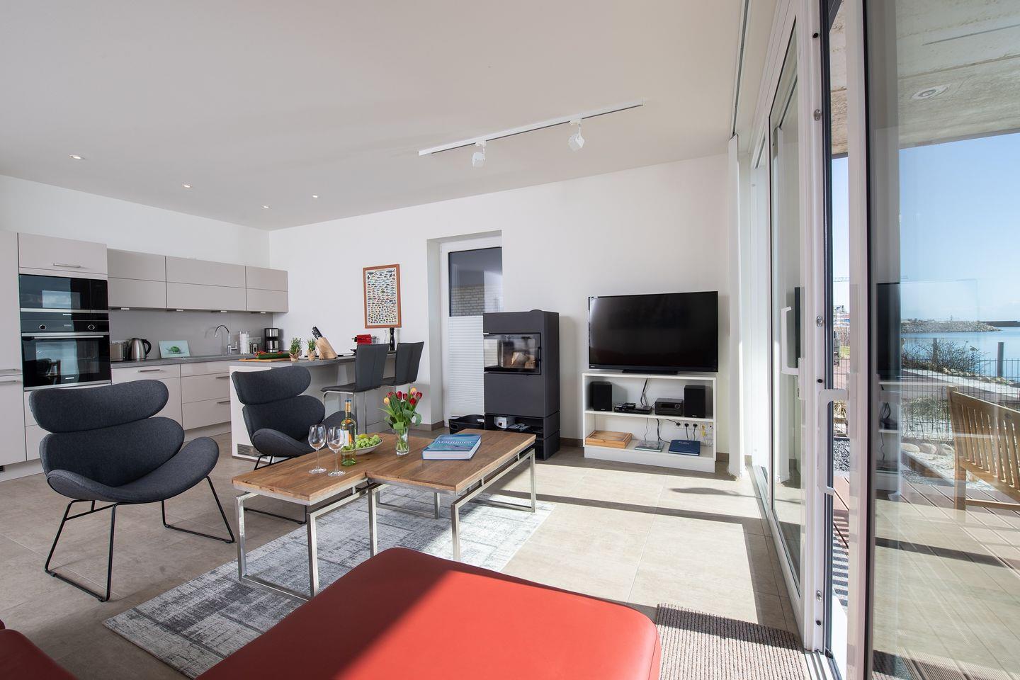 Die Wohnung befindet sich im Parterre und besticht durch ihren offenen Wohnbereich, der mit einer voll ausgestatteten Küche, einem komfortablen Essbereich und einem einladenden Wohnzimmer ausgestattet ist. Hier kannst Du nach einem erlebnisreichen Tag am Strand bei einem gemeinsamen Abendessen oder einem Filmabend auf einem der drei Flachbild-TVs entspannen.