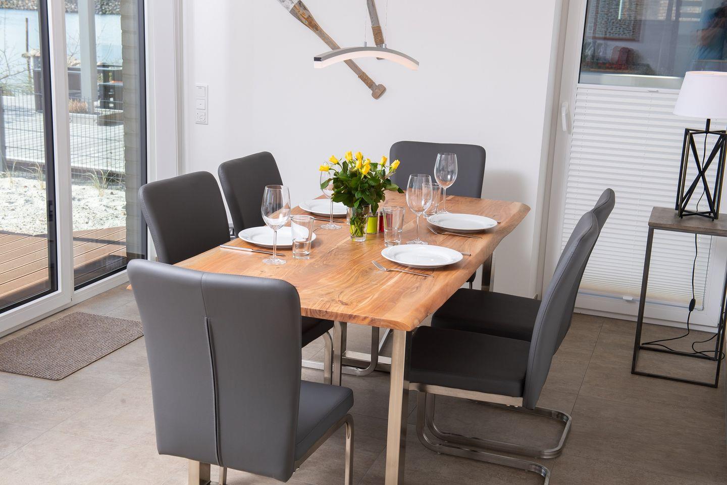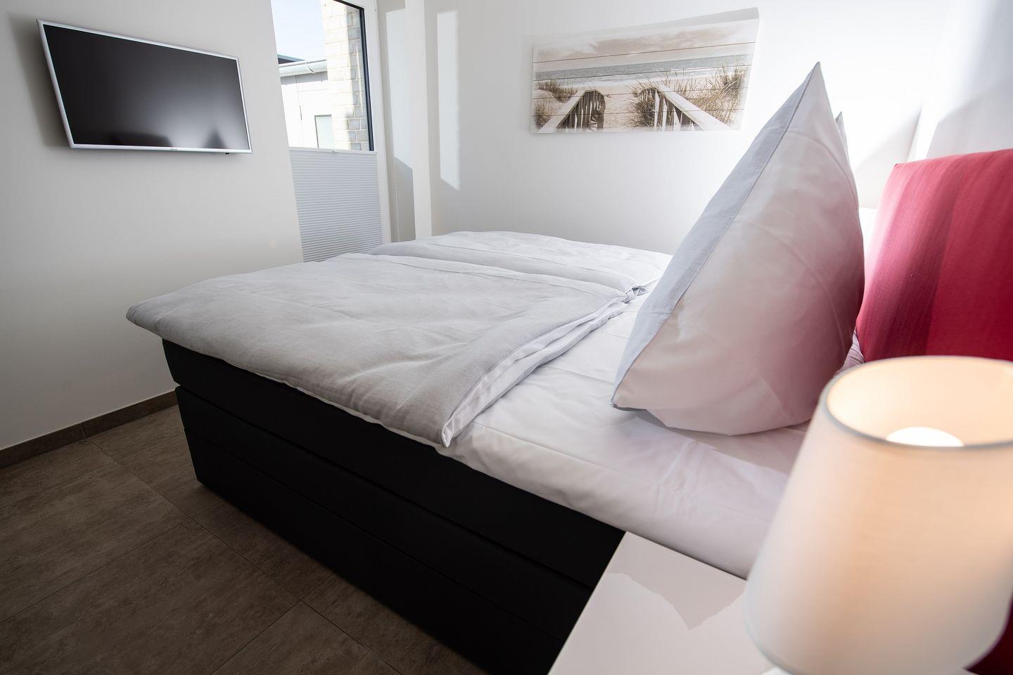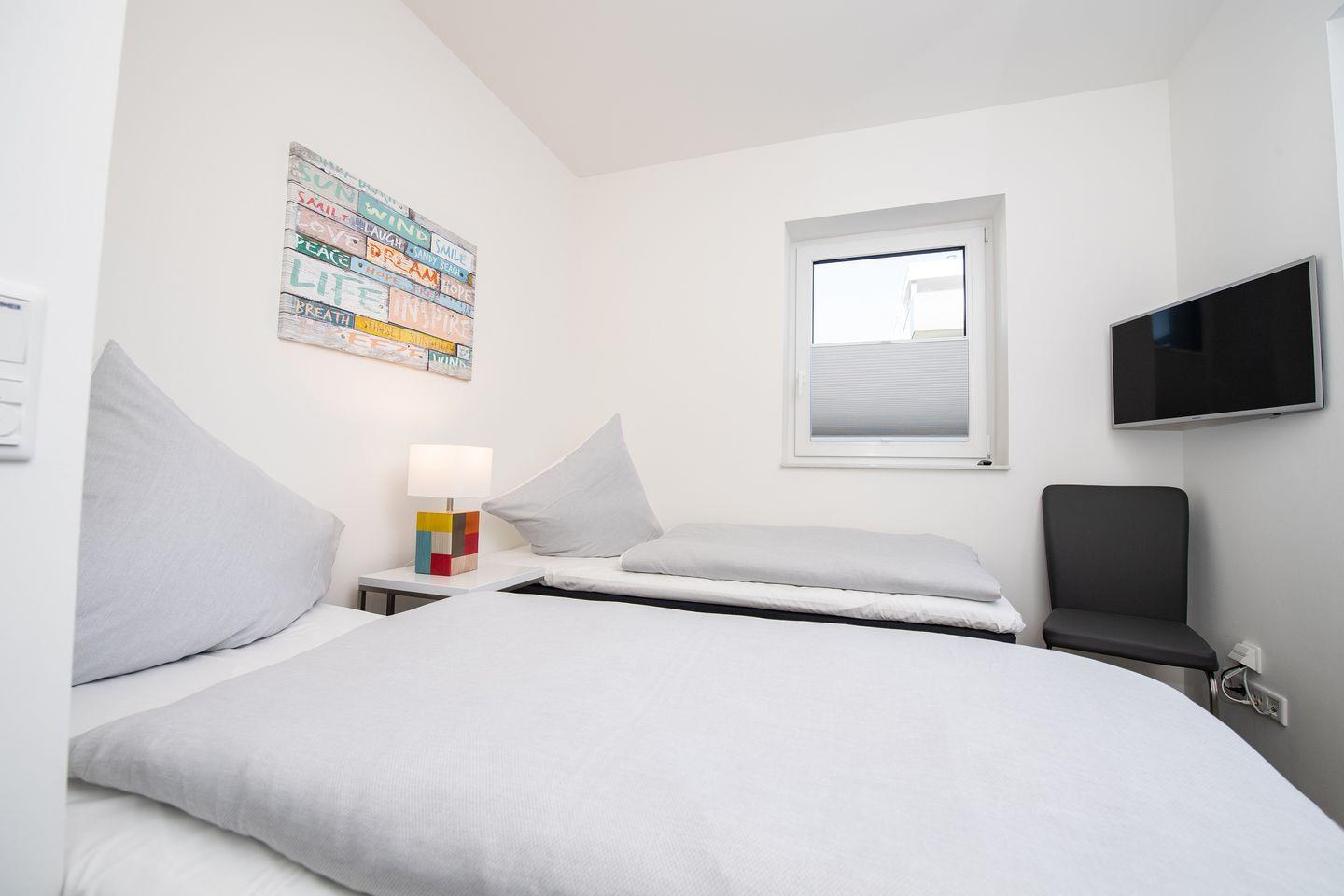Die Wohnung befindet sich im Parterre und besticht durch ihren offenen Wohnbereich, der mit einer voll ausgestatteten Küche, einem komfortablen Essbereich und einem einladenden Wohnzimmer ausgestattet ist. Hier kannst Du nach einem erlebnisreichen Tag am Strand bei einem gemeinsamen Abendessen oder einem Filmabend auf einem der drei Flachbild-TVs entspannen.