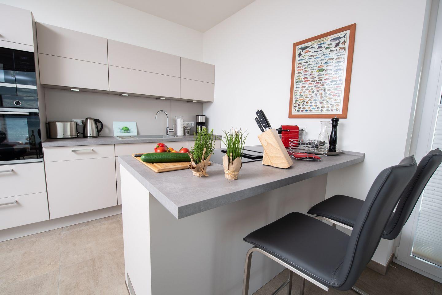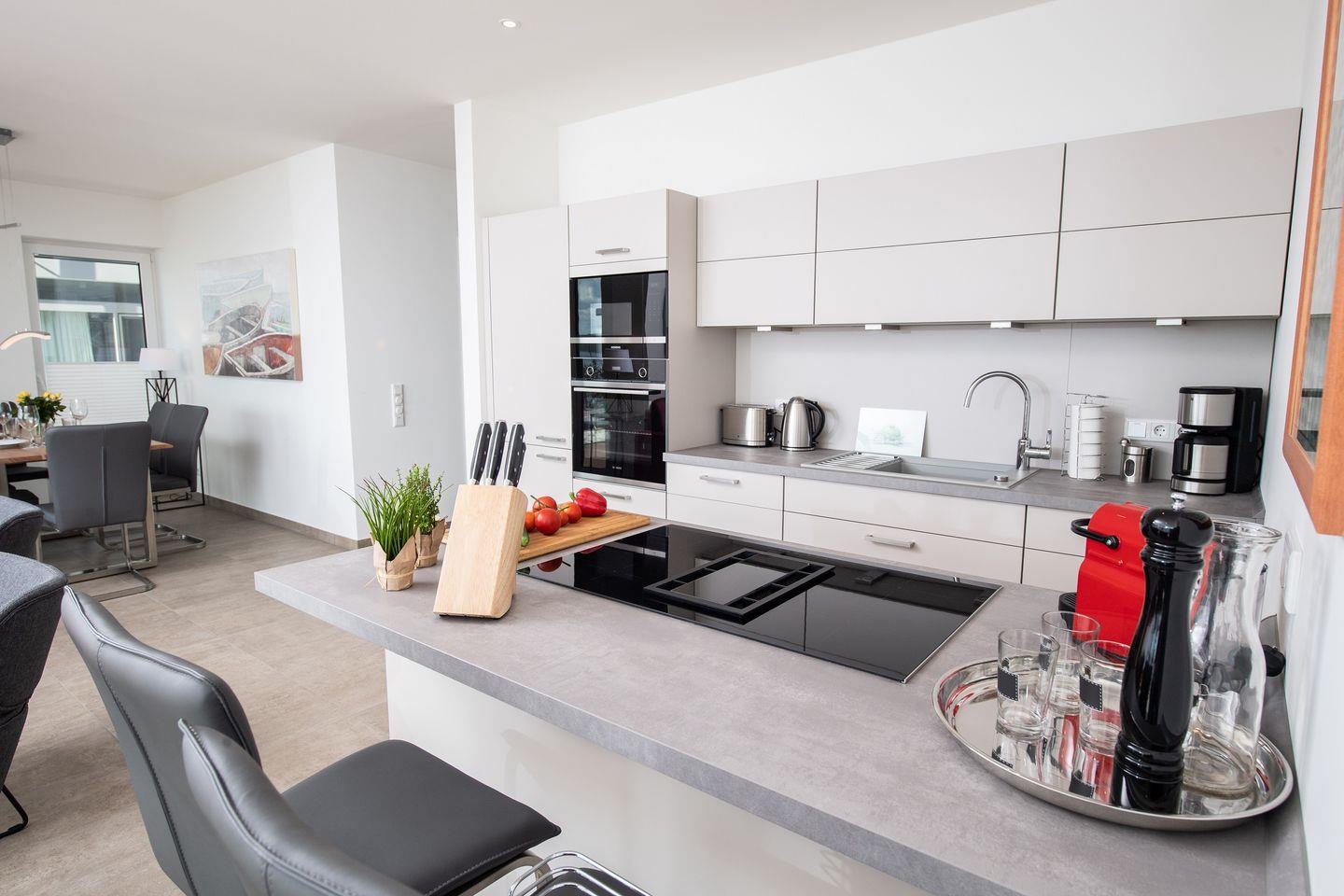 Damit es Dir während Deines Aufenthalts an nichts fehlt, stehen Dir eine Waschmaschine sowie eine voll ausgestattete Küche mit modernen Geräten, inklusive einer Spülmaschine und einer Nespresso-Maschine, zur Verfügung.