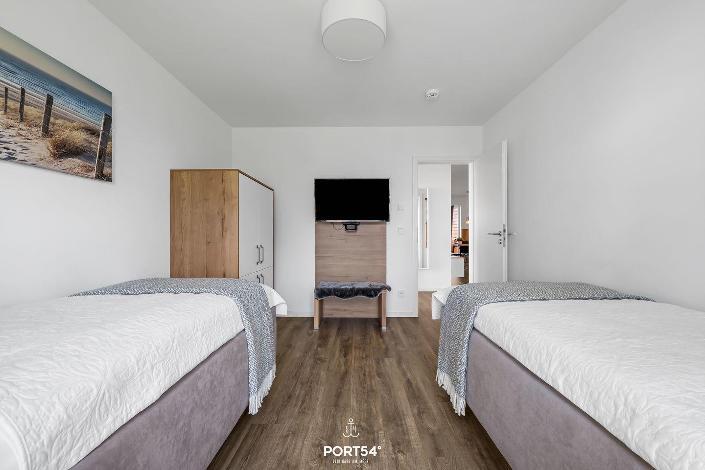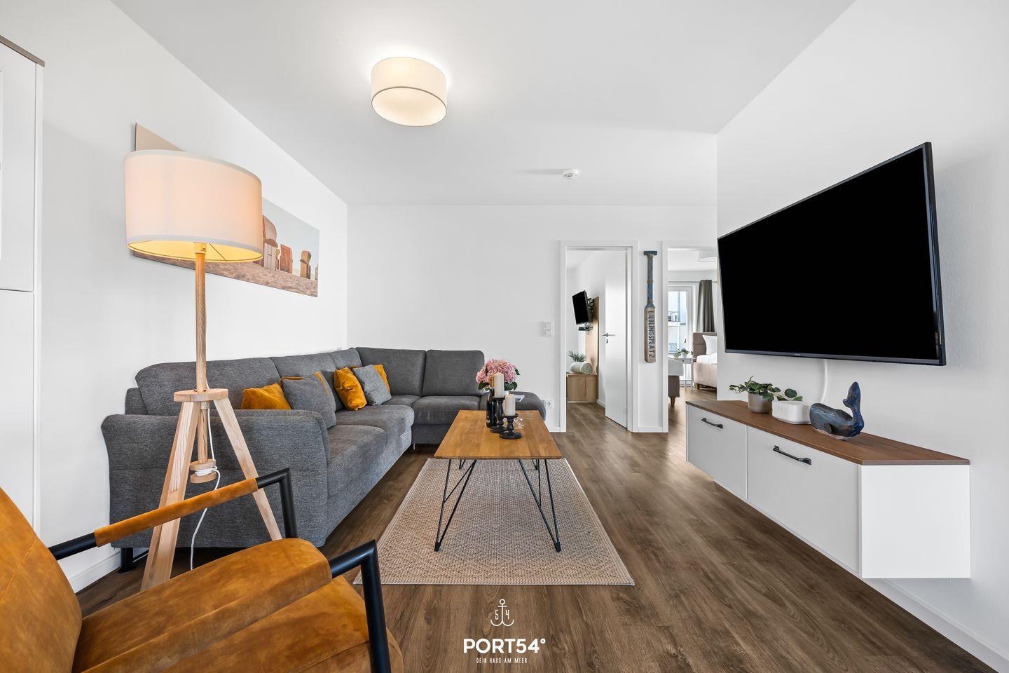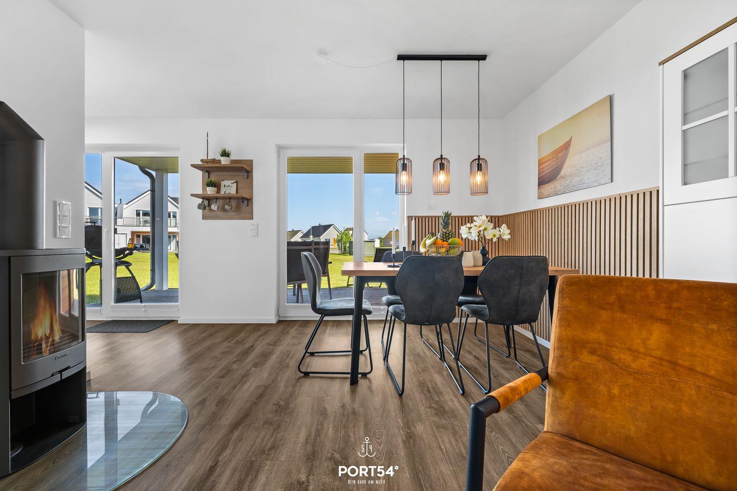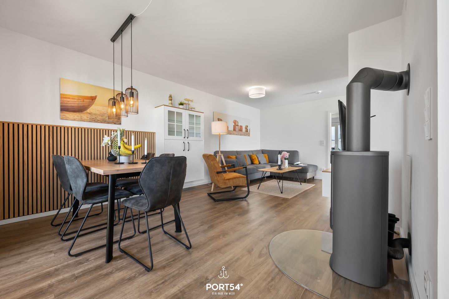 Die große Ferienwohnung „Nordisch 54“ bietet Dir Platz für 5 Personen und verfügt über einen gemütlichen Wohnbereich mit Kaminofen.Die offene Küche ist voll ausgestattet und die Terrasse lädt Dich zum Entspannen ein.Im Badezimmer erwarten Dich eine Infrarot-Sauna und eine ebenerdige Dusche. Zwei Schlafzimmer mit TV sorgen für Deinen Komfort.