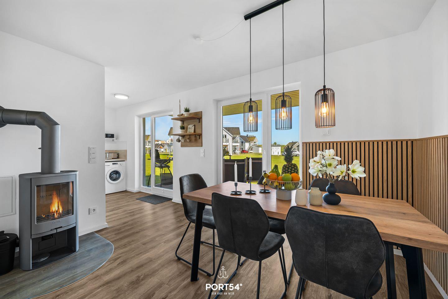 Im Wohn- und Essbereich kannst Du es Dir auf dem Sofa gemütlich machen und Dich von einem spannenden Film auf dem Flachbild-Fernseher unterhalten lassen. An kühleren Tagen sorgt der Kaminofen für eine wohlige Wärme.