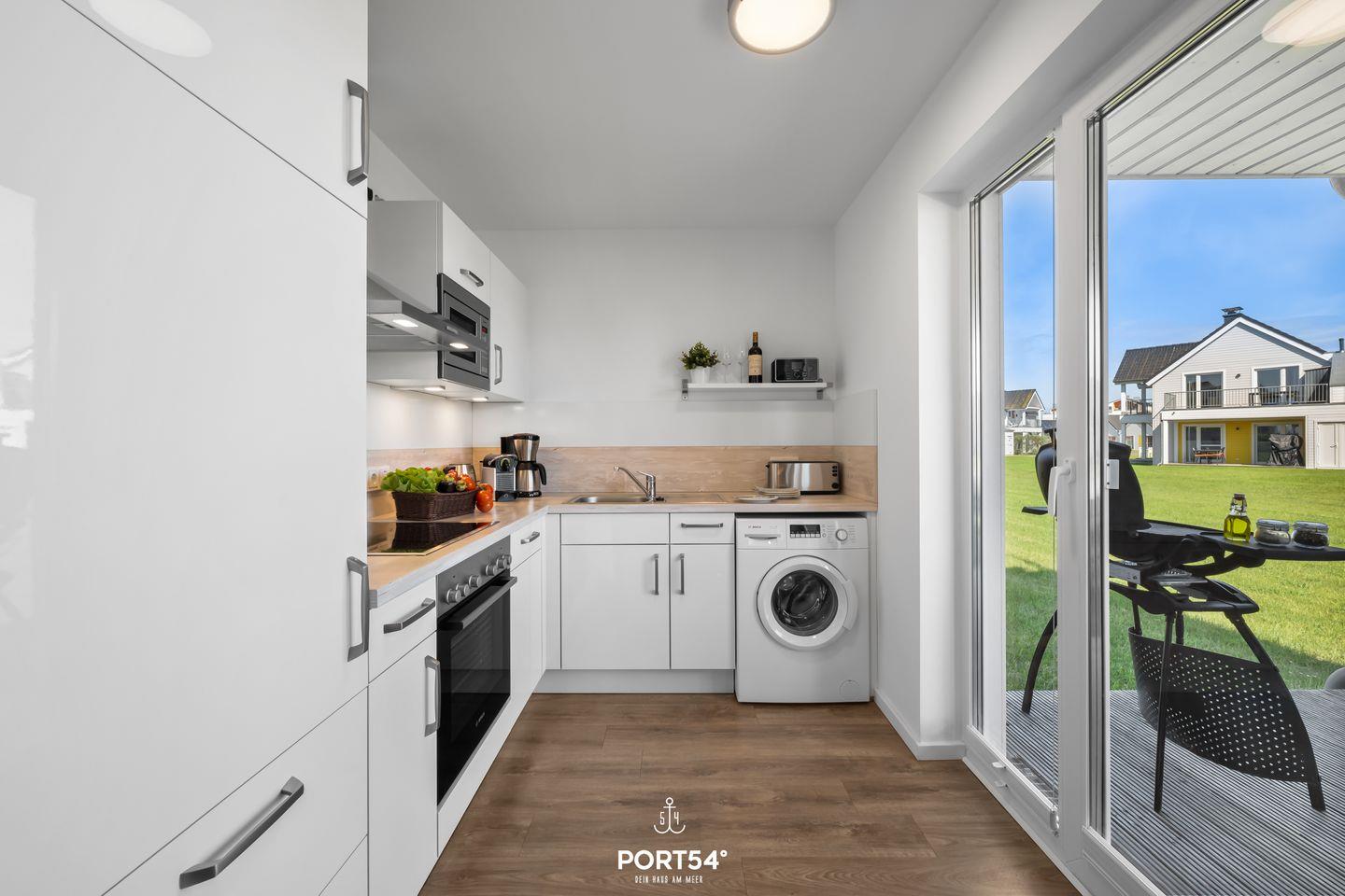 Die angrenzende offene Küche ist voll ausgestattet, sodass Dir während Deines Aufenthalts nichts fehlt, um leckere Gerichte zuzubereiten. Von der Küche und dem Essbereich aus gelangst Du auf die überdachte Terrasse. Hier kannst Du an der frischen Meeresluft frühstücken oder unvergessliche Grillabende am Elektro-Grill verbringen. Auf den Sonnenliegen lässt es sich hervorragend entspannen.