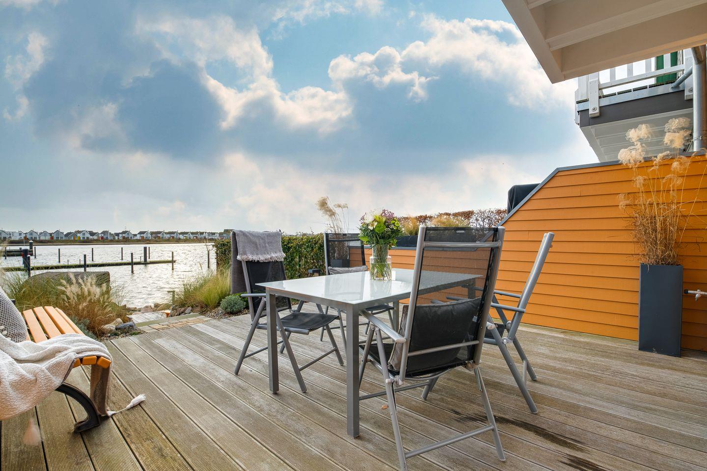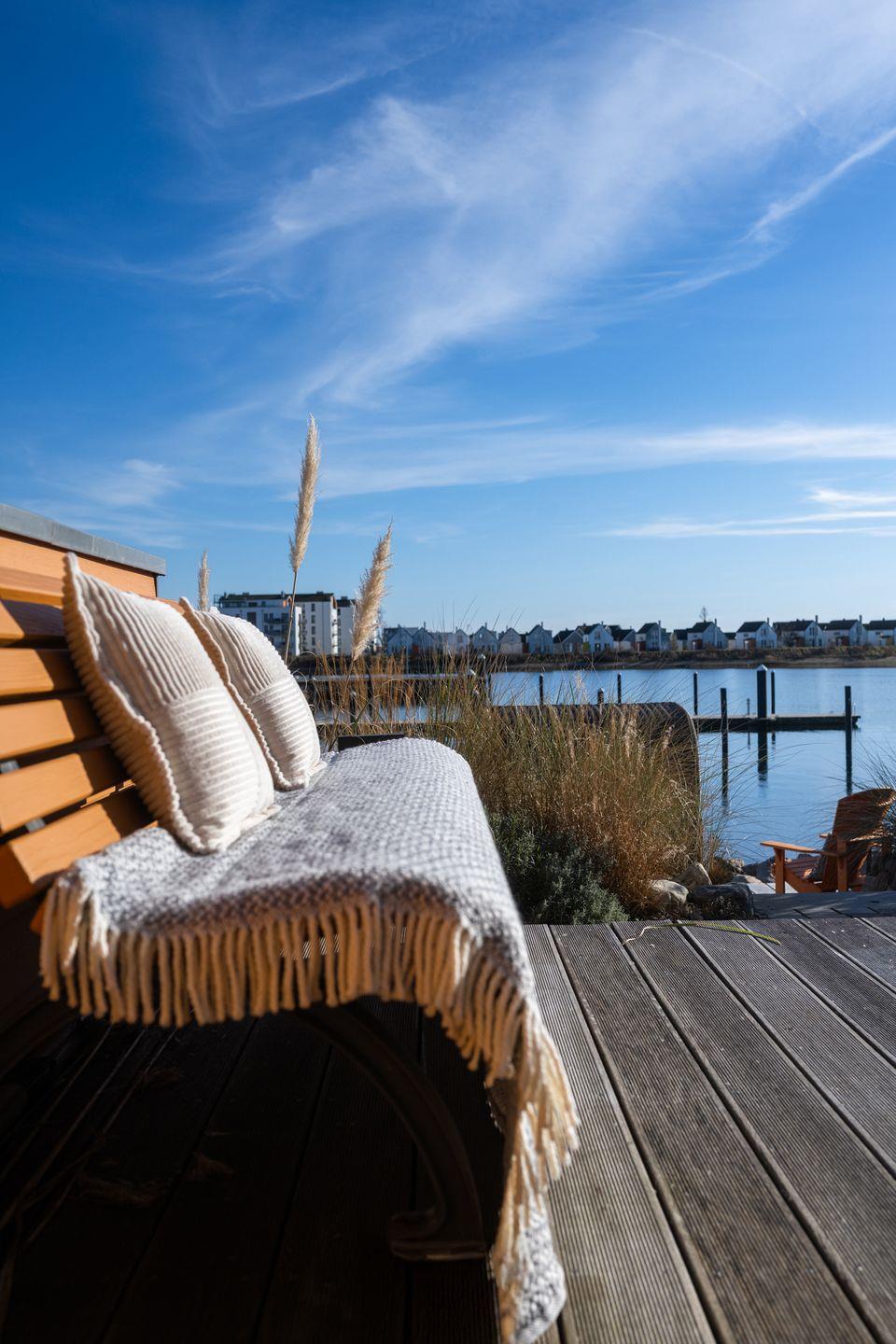 Das frisch renovierte Ferienhaus „Hafenspaß“ bietet auf ca. 100 qm Platz für 4 Personen und eine Einrichtung im gemütlichen Landhausstil direkt am Wasser. Der Wohnbereich mit Panoramafenstern bietet Ausblick auf den Hafen, eine moderne Küche und einen Kamin. Zwei Schlafzimmer im Obergeschoss und ein Badezimmer mit finnischer Sauna komplettieren das Angebot. Die Terrassen laden zum Entspannen ein. Familienfreundliche Ausstattung inklusive Parkplatz mit E-Ladesäule. - Wenige Meter zum Strand.